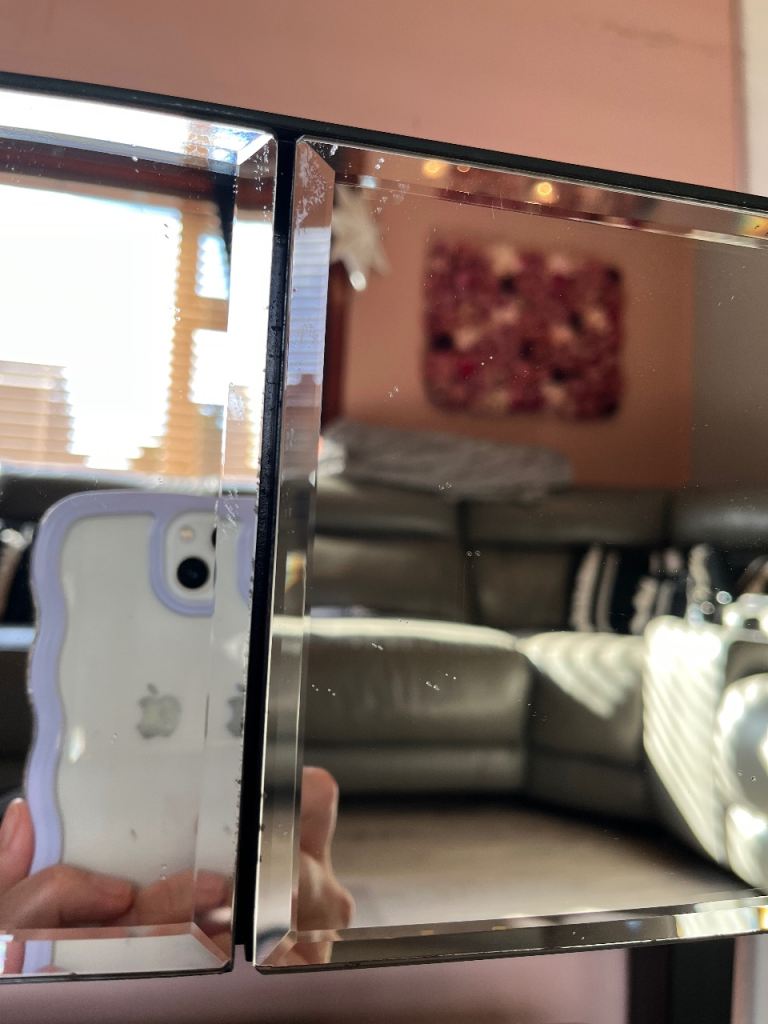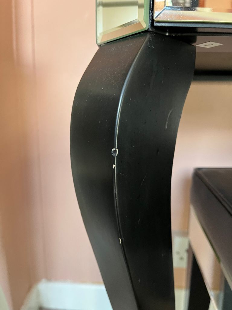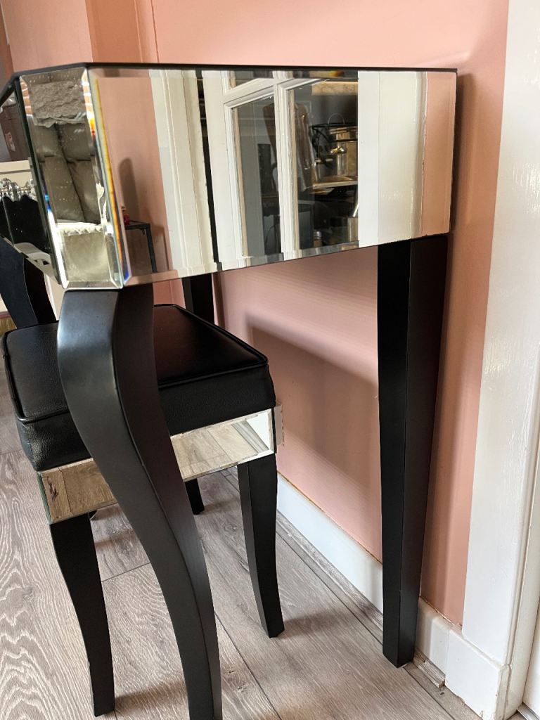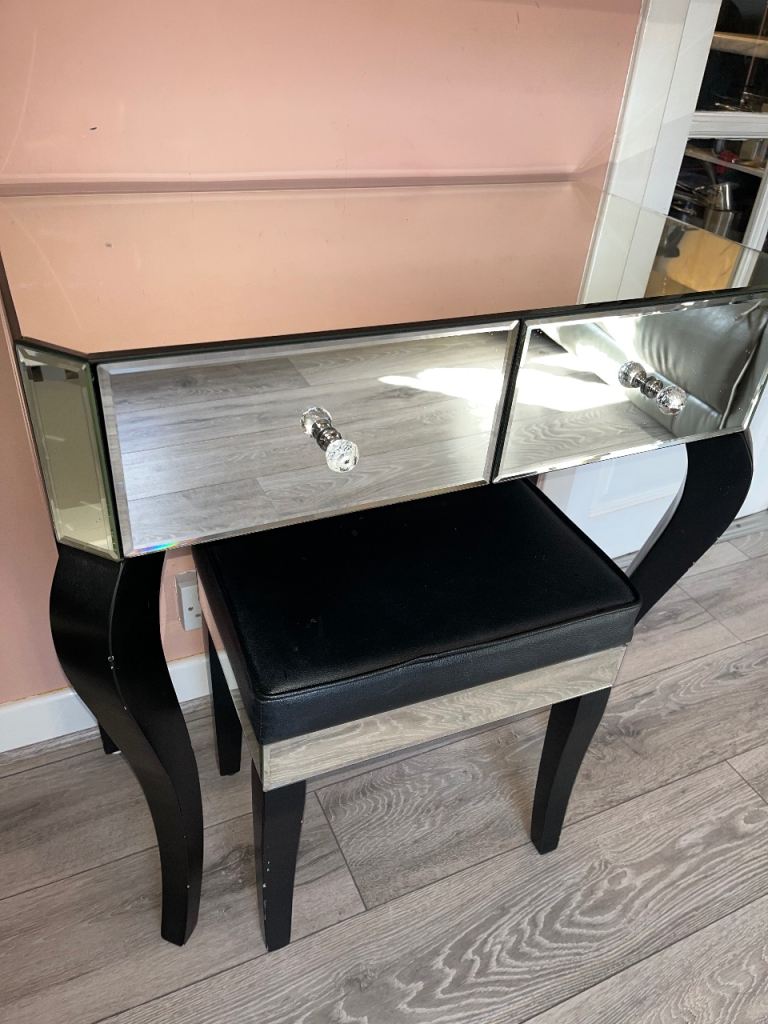 Well loved mirrored dressing table. There are signs of wear and tear as shown and spots of eyelash glue that my teen has spilled.