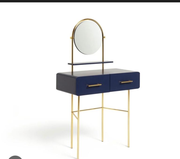 Brand new boxed Habitat Wilderness Dressing Table in midnight blue finish with stylish gold metal legs and handle detailing. Flat-pack, unused, still in original packaging. Classic and elegant bedroom vanity/table. Collection from Glasgow.