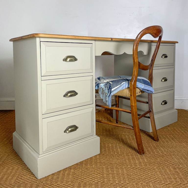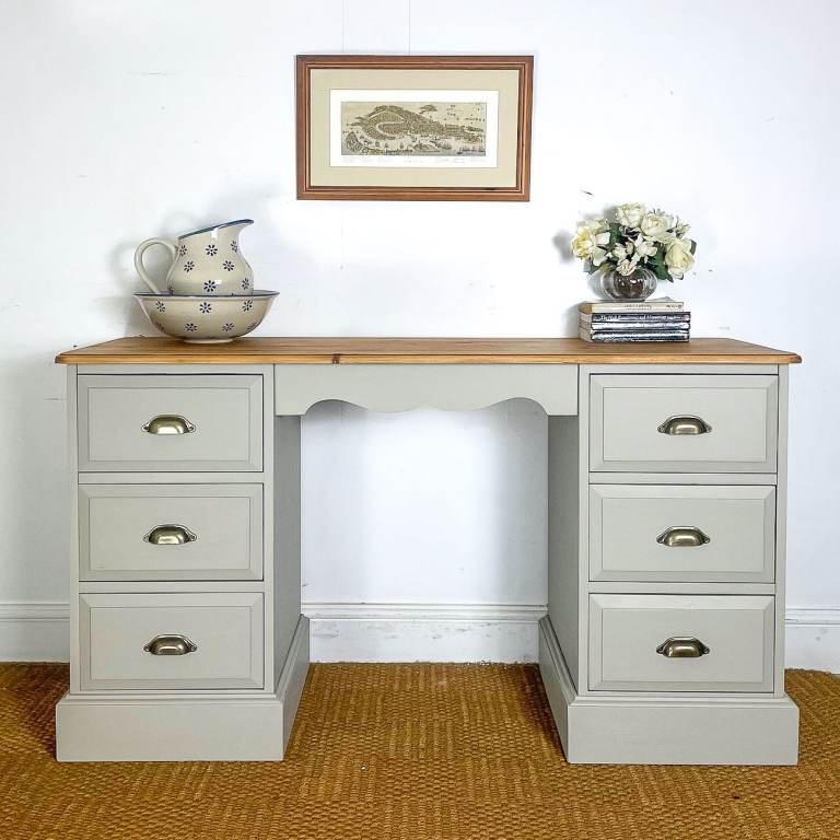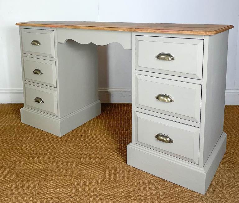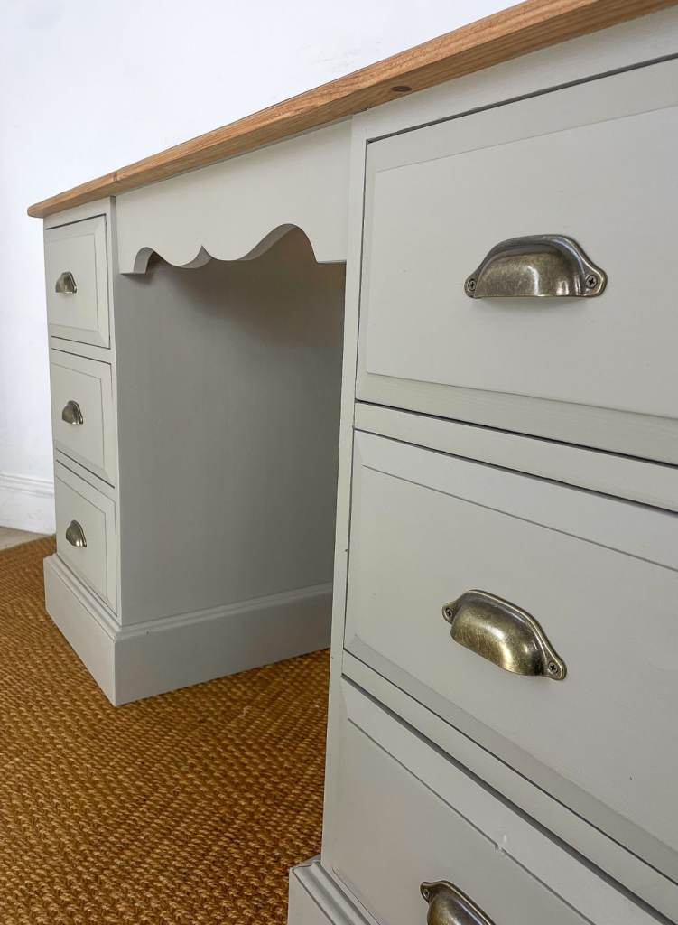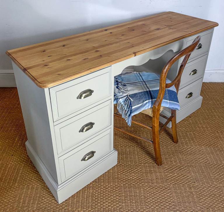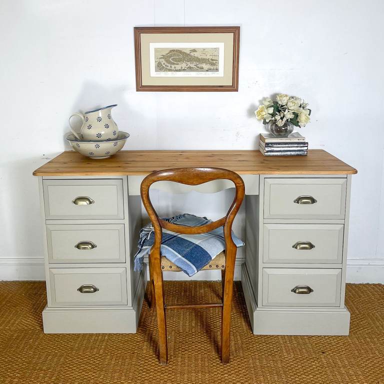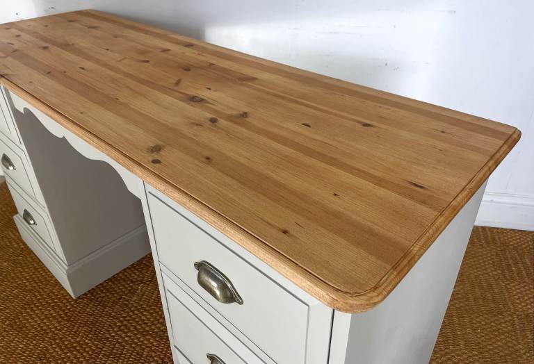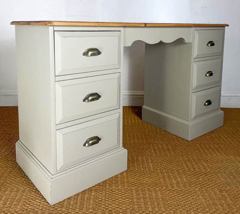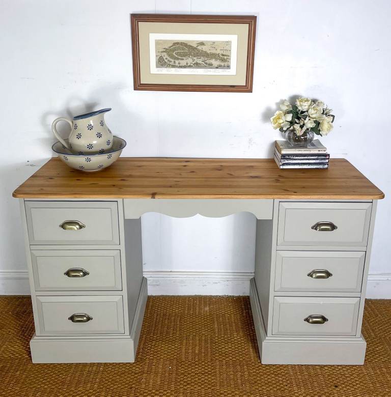 Reclaimed Solid pine double pedestal dressing table / desk finished creamy grey