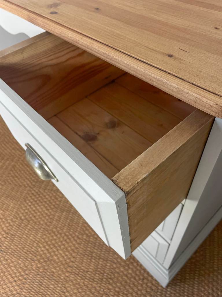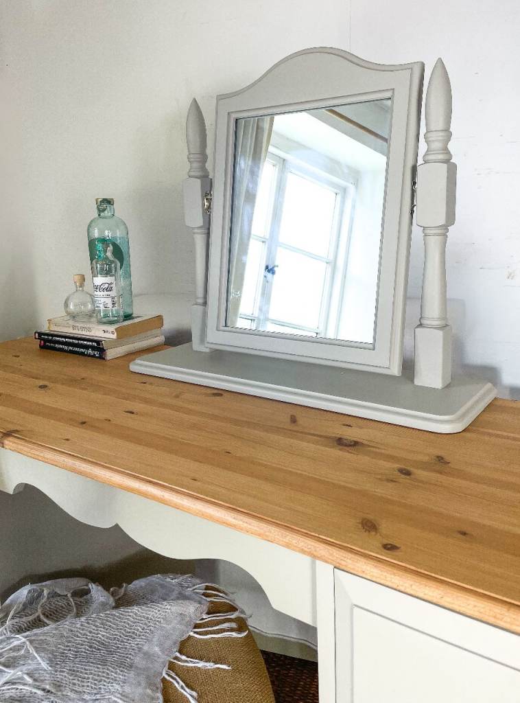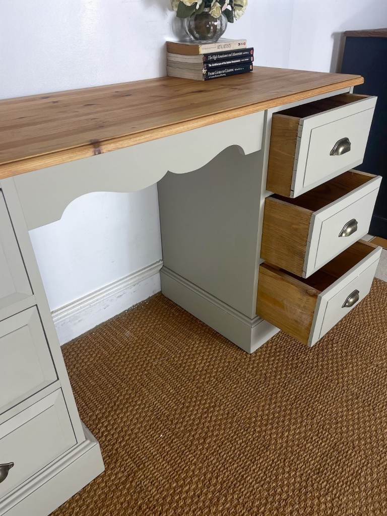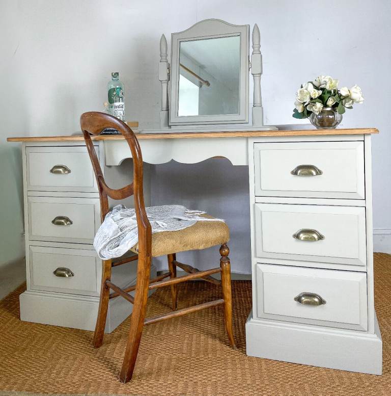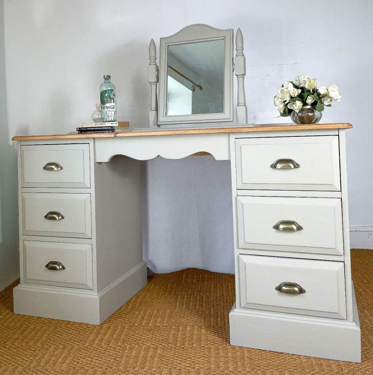 Solid pine double pedestal dressing table with drawers mirror hand painted cream grey