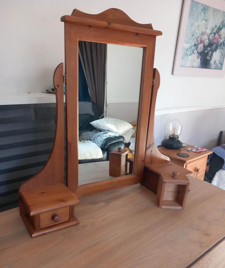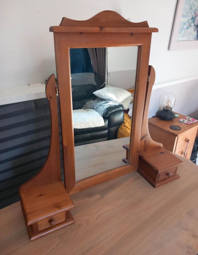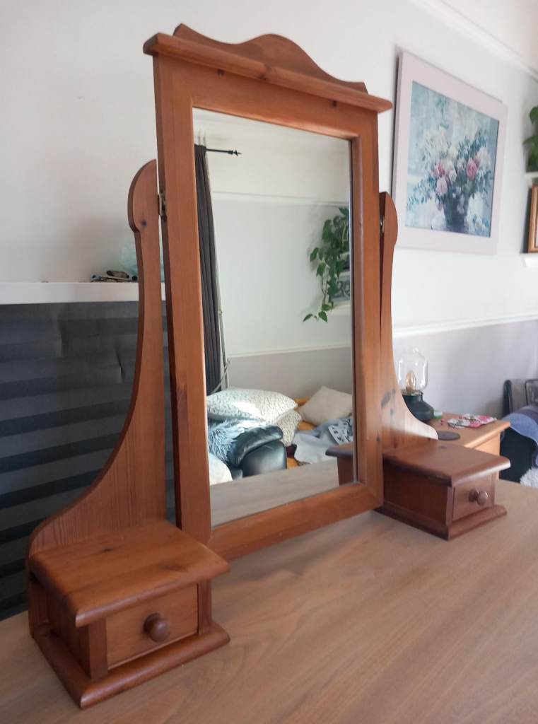 Solid Pine - Mirror with 2 Small Drawers - Vintage - Horfield