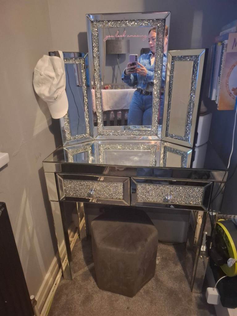 A lovely item, glass in great condition, originally from a vintage dresser.