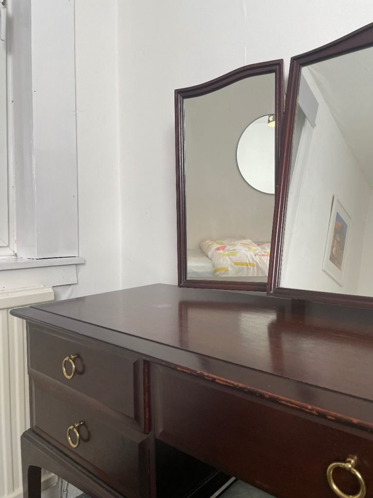 Hiya, I’m selling this dressing table set which comes with a stool (pictured) and it’s original mirrors