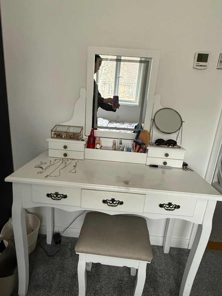 Posting for under a monthVanity desk with pouf and mirror