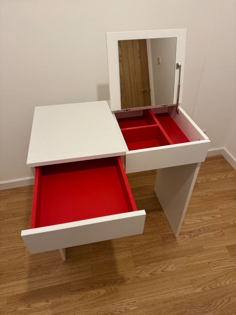 White dressing table with one drawer and lift up mirror as can be seen in pictures