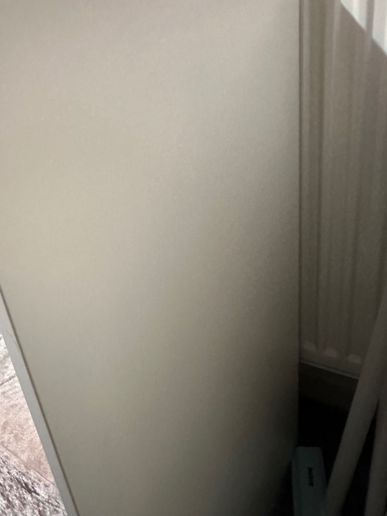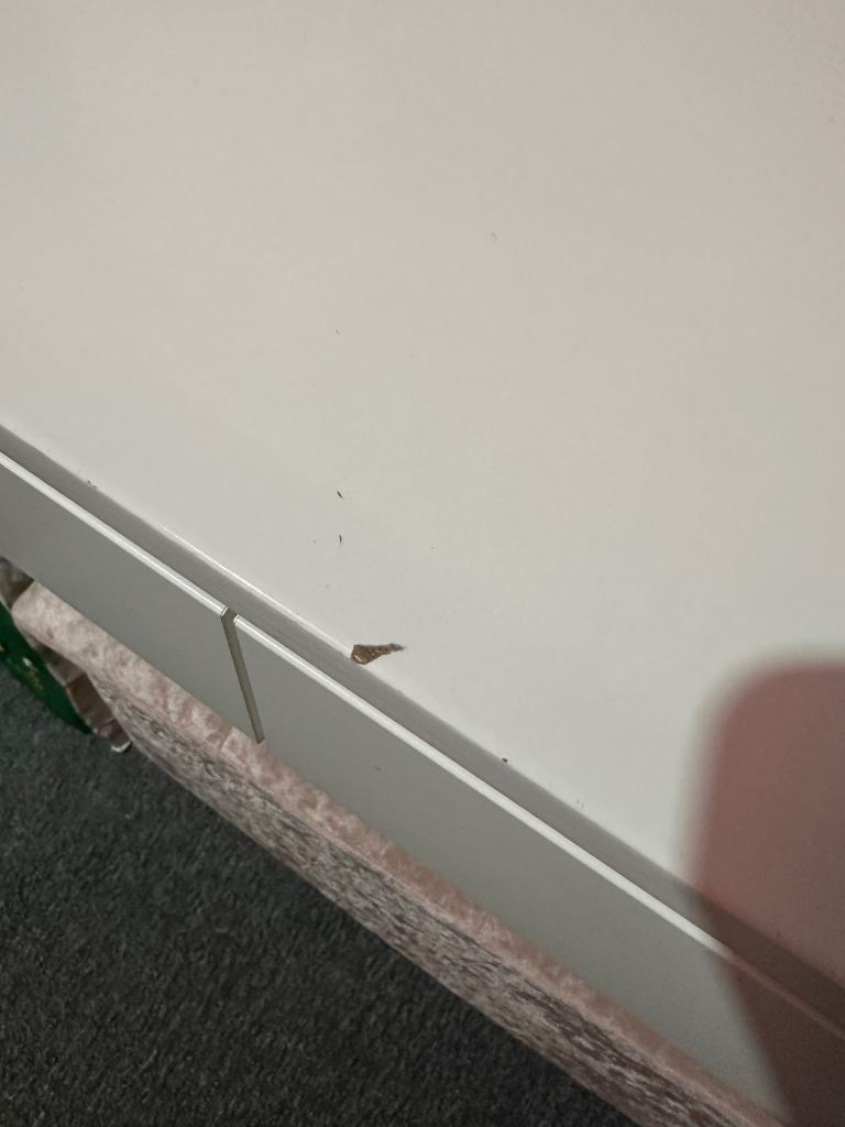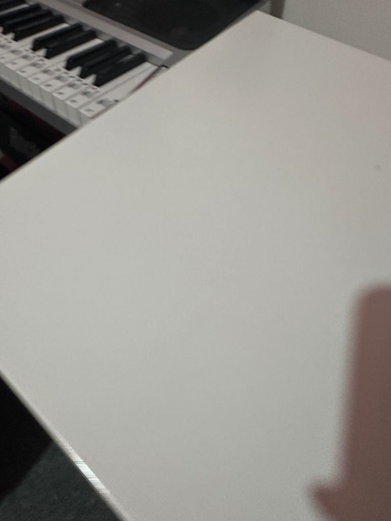 Sturdy with slimline drawer for storage. Some marks and chips on the top which I have shown on the photos. Fully assembled, quite heavy. Dimensions: Width 44cm