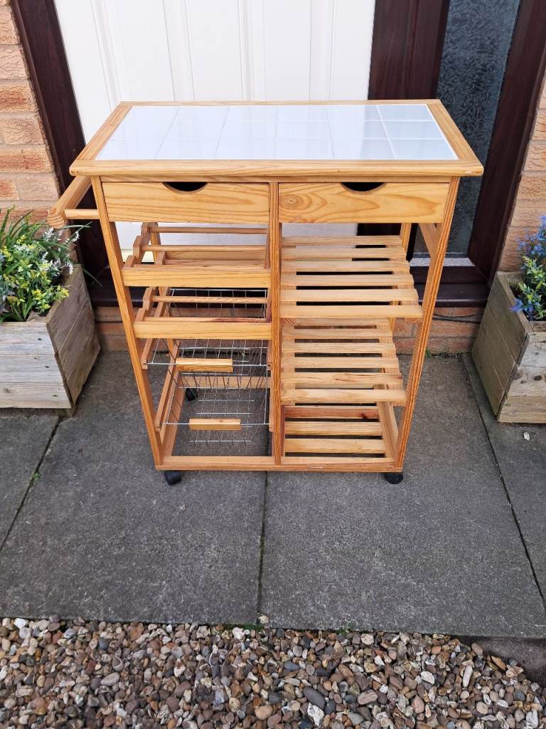 Comes with a sturdy black metal stand and wooden handles for easy carrying.