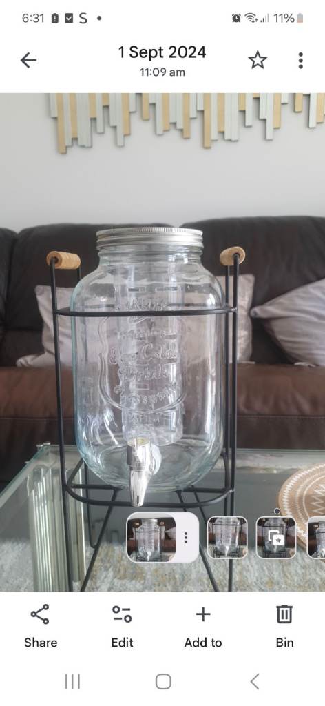 Posting for 1+ monthsLarge Glass Drinks Dispenser with Metal Stand