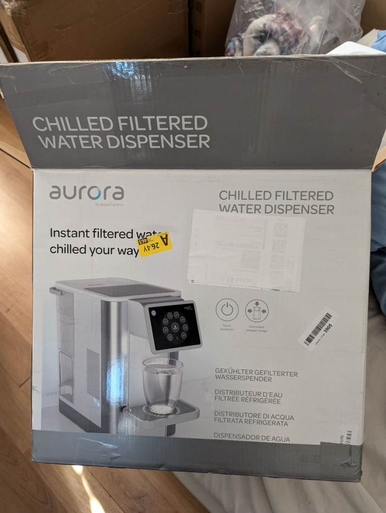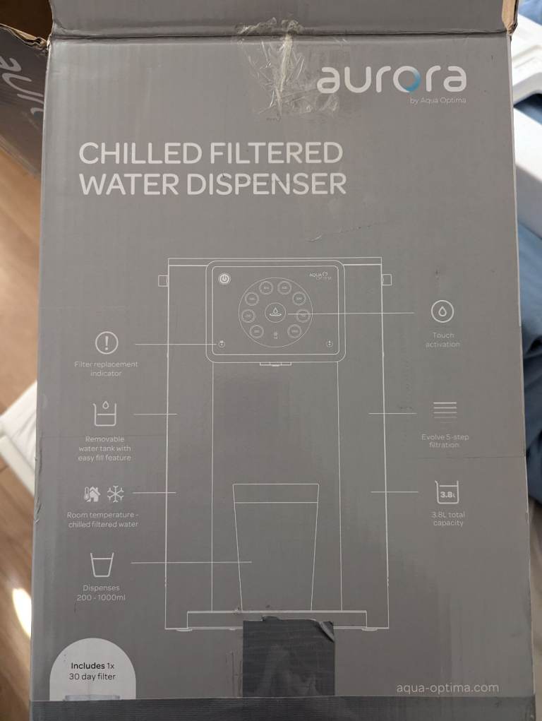 Aqua Optima Aurora Chilled Filtered Water Dispenser - 3.8L Capacity - With 1 x 30 Day Evolve Water Filter for the Reduction Of Microplastics, Chlorine, Limescale And Other Impurities