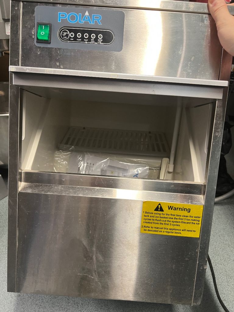 New ice machines,when we bought,just open the package,Too small for us,so we sell,,The new price is £300,now we sell £100。Collect only