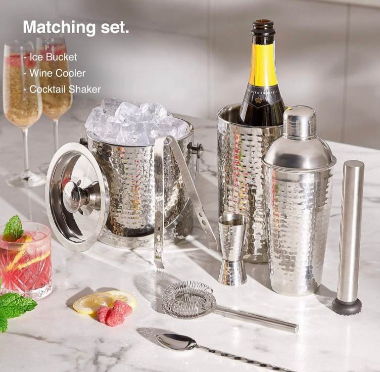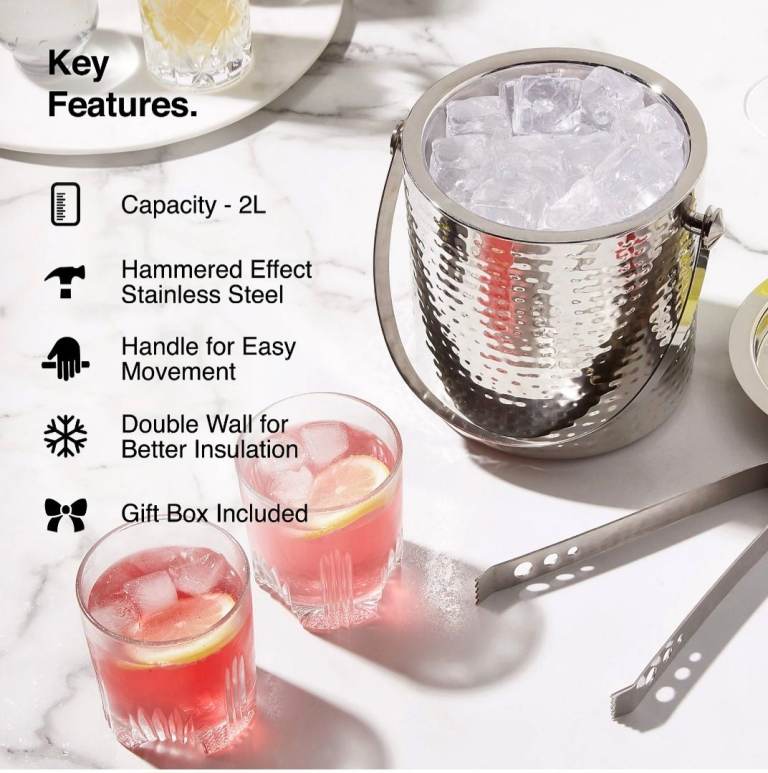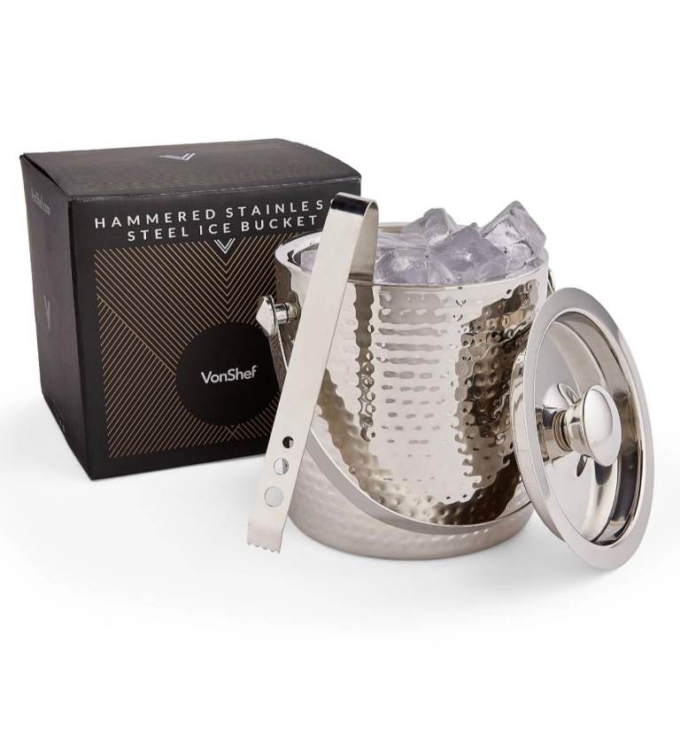 HAMMERED STEEL: Add a sleek touch to your home bar or kitchen table with the VonShef ice bucket, finished with a hammered exterior for an eye-catching yet subtle design to suit any occasion.