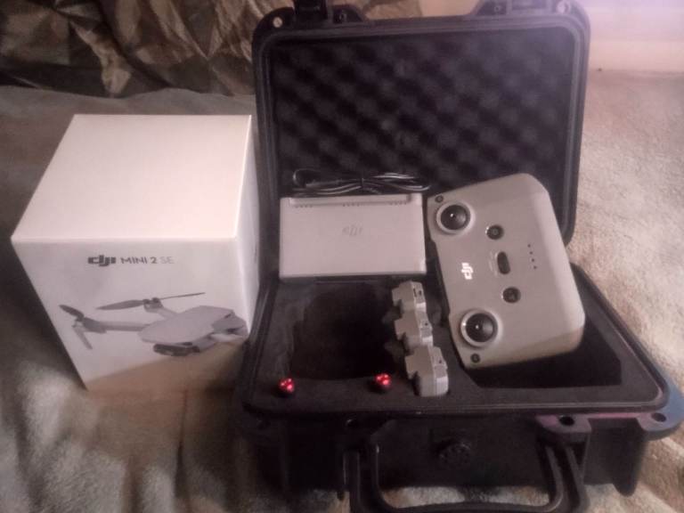I have a brand new unopened mini 2 se drone with hard case charging cable and charger with 3 batteries and controller what you get is what is in the pictures it hasn't been bound to account so it will be in full working order.
