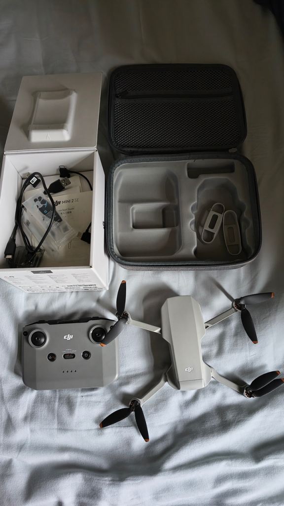 Great little drone. Comes with everything seen. DOES NOT COME WITH BATTERY. Key Features & Specifications Camera: 2.7K/30fps video, 12MP stills, 3-axis gimbal for stable footage. Flight Performance: Up to 31-minute flight time, 38kph (Level 5) wind resistance. Transmission: DJI O2 technology provides up to 10 km (6.2 miles) of HD video transmission. Safety & Controls: Auto Takeoff/Landing, Smart Return to Home (RTH), and downward vision sensors for stable hovering. Intelligent Modes: QuickShots (Dronie, Helix, Rocket, Circle, Boomerang) and Panorama. Weight: Under 249g, making it exempt from registration in many regions.