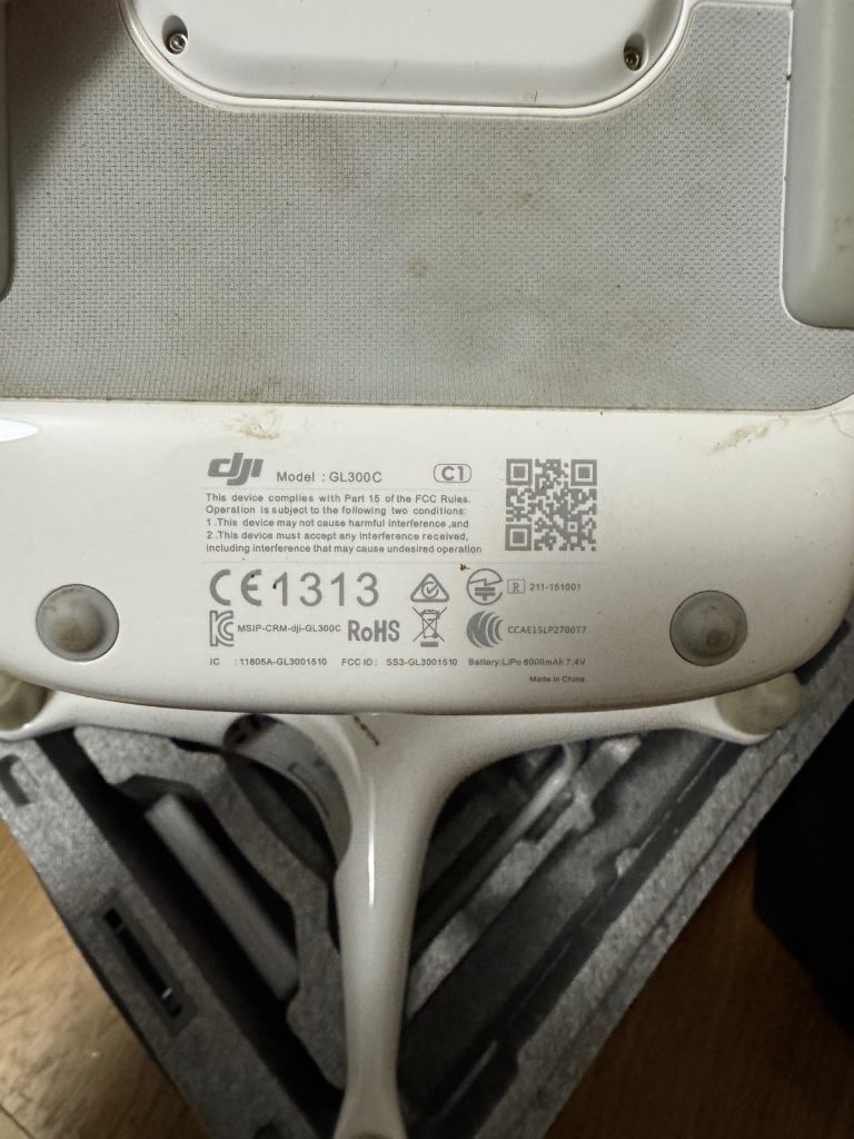 DJI Phantom 4 drone in good working order, with model number GL300C visible.