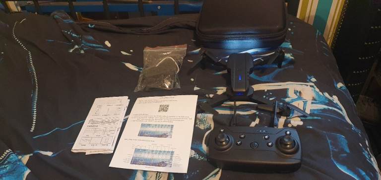 Drone comes with USB cable manuals 3 batterys with all Accessories