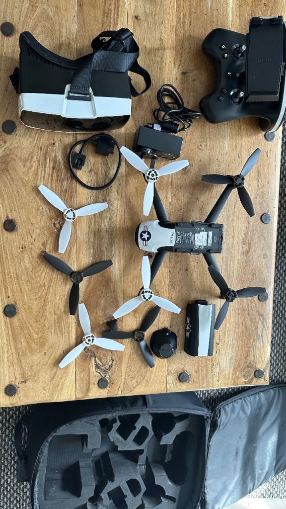 Only use a few times. Never crashed or damaged. Also comes with controller and VR headset.