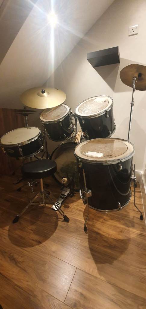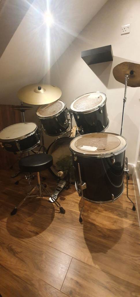 TIGER Full Size Acoustic Drum Kit with Stands Stool Sticks & Cymbals