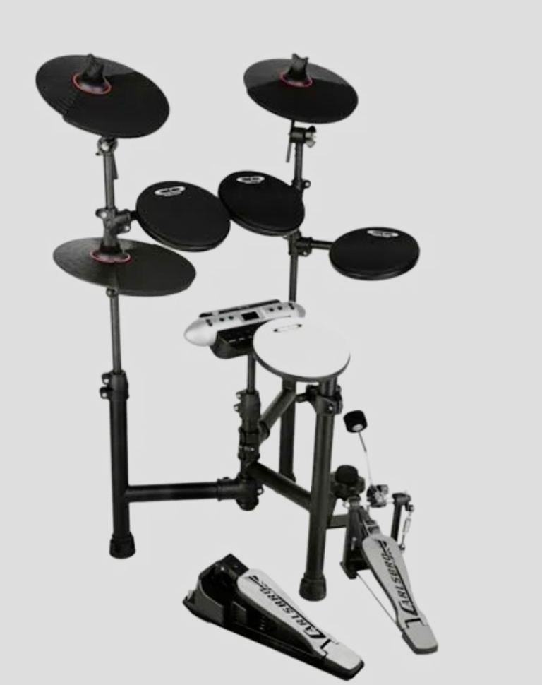 Used, fully functional electronic drum kit, perfect for small spaces folds compact and easily disassembled if required. Can be used with Headphones/Speaker/Hi-Fi anything with AUX/Phono input.