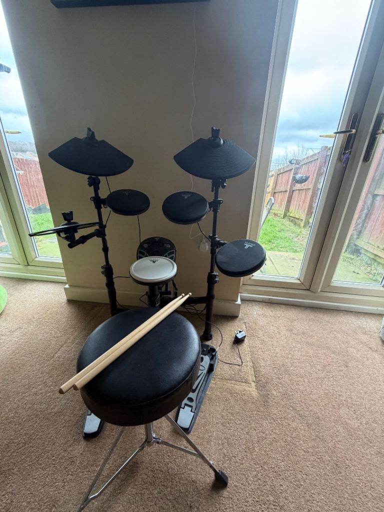Excellent drum kit, fully working, all parts included - including set up manual. Folds away to give space.