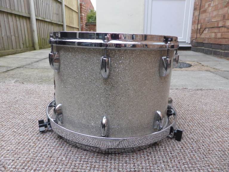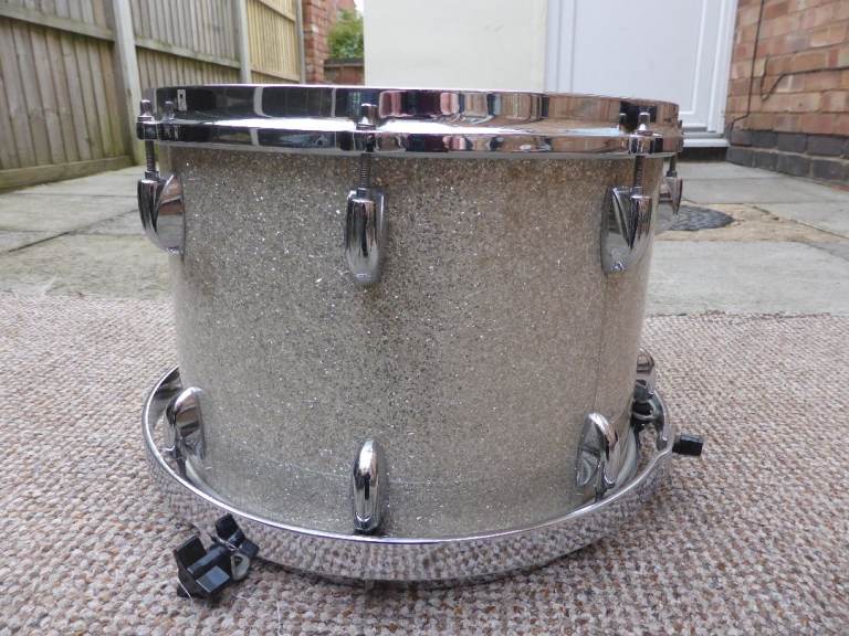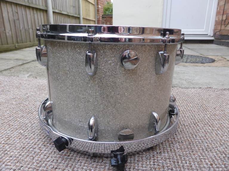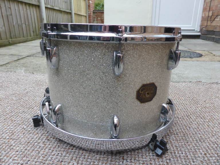 Gretsch Drop G 14 x 10 Silver Glass Glitter Tom Drum. Recovered By Eddie Ryan