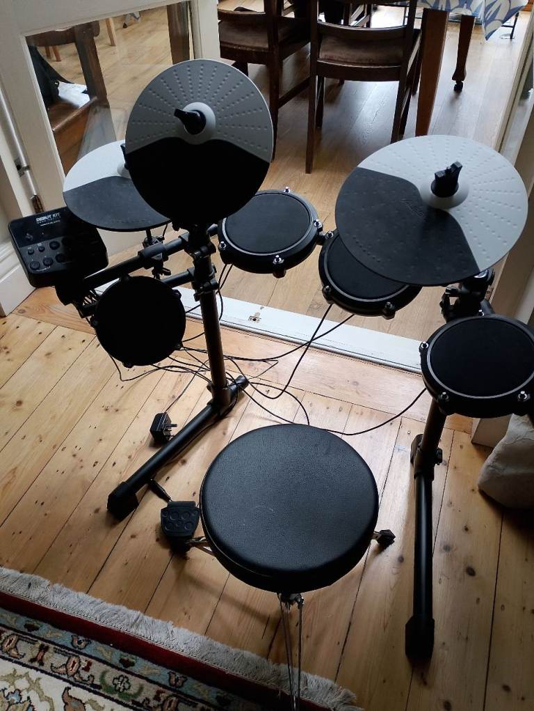 Excellent condition kids e drum kit including 4 drums, 3 cymbals and adjustable stool *no drumsticks