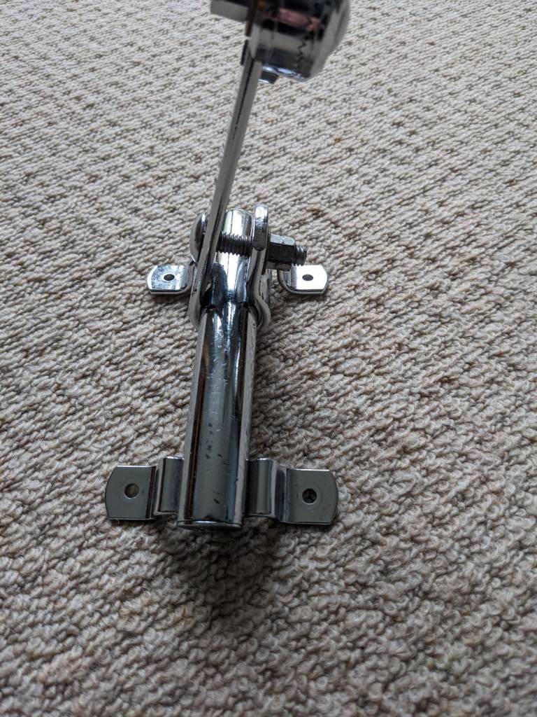 Four-hole mount pattern. In very good working condition. Chrome good. Used recently on a 60's Ludwig.