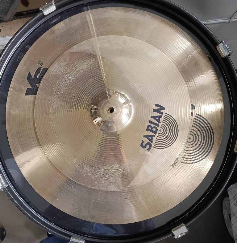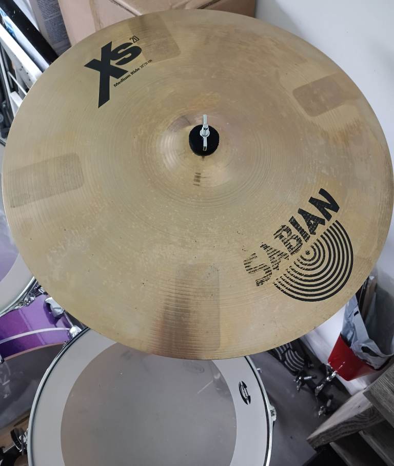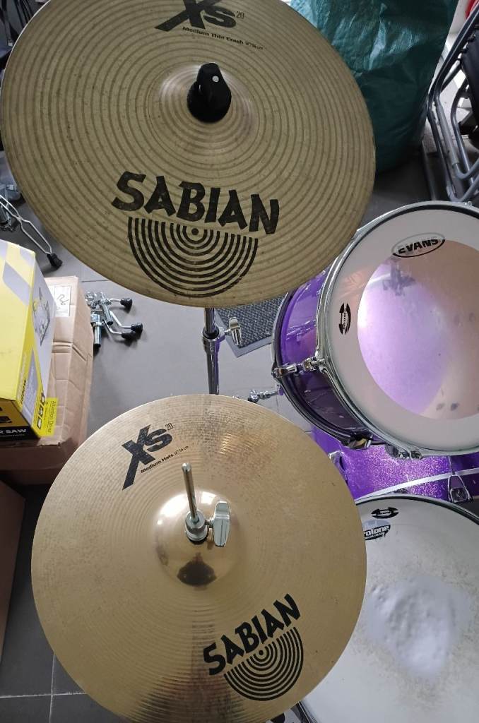 The kit is sold with a Sabian XS20 cymbal set: 14” hi-hats a 14” crash and a 20” ride cymbal. The cymbals are dirty and have sticking marks but overall good condition for their age. They could do with a really good clean, especially the ride cymbal.