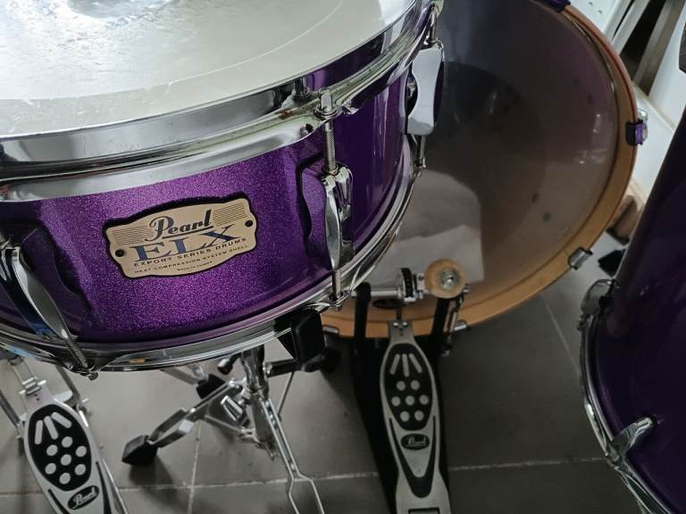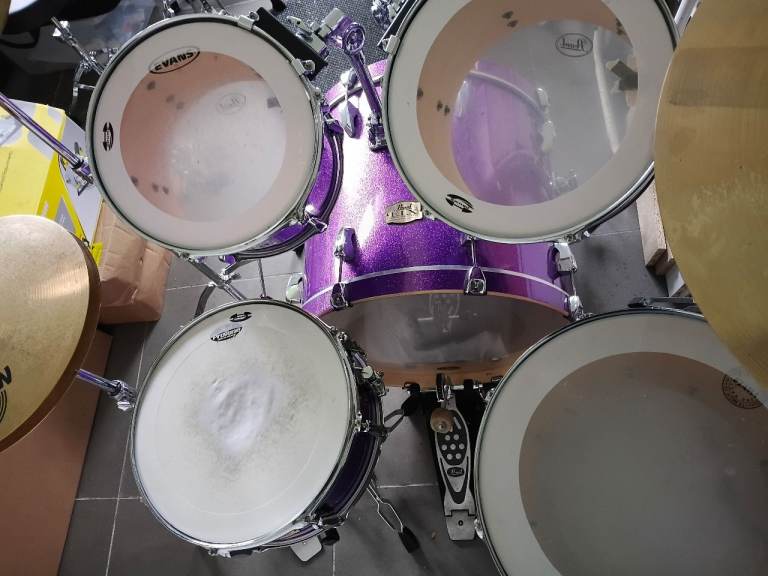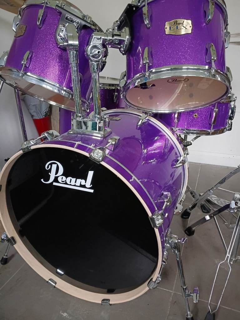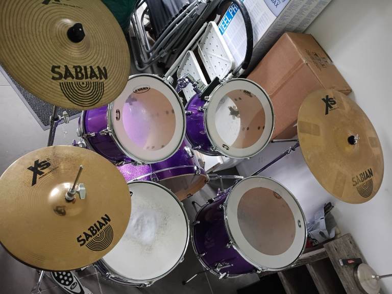 This is my Pearl Export ELX 5 piece drum kit in Galaxy Purple Wrap with very high quality Sabian XS20 Cymbals.