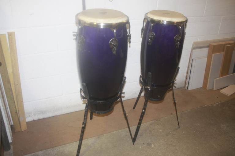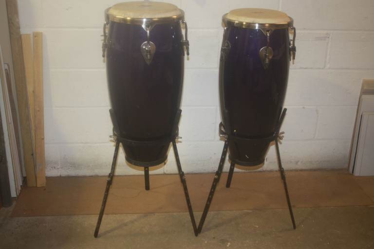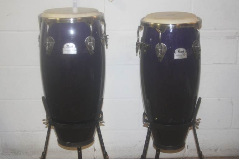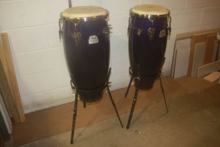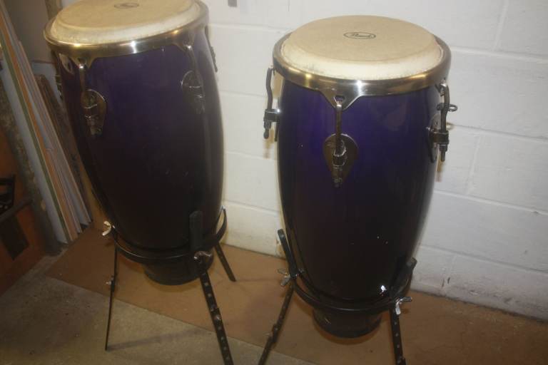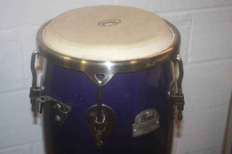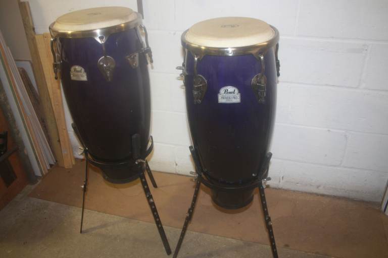 Pearl Primero Pro Series Blue Wooden Congas 10in + 11in + Basket Stands ~ Great Condition ~ £275 ono