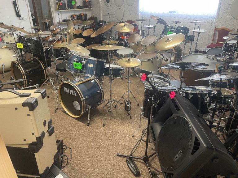 Kits from 200 to 2k including electric. Massive hardware choice, 200 plus used cymbals, 75 kits, spares, cases, cymbal cleaning, can post or deliver, p ex.