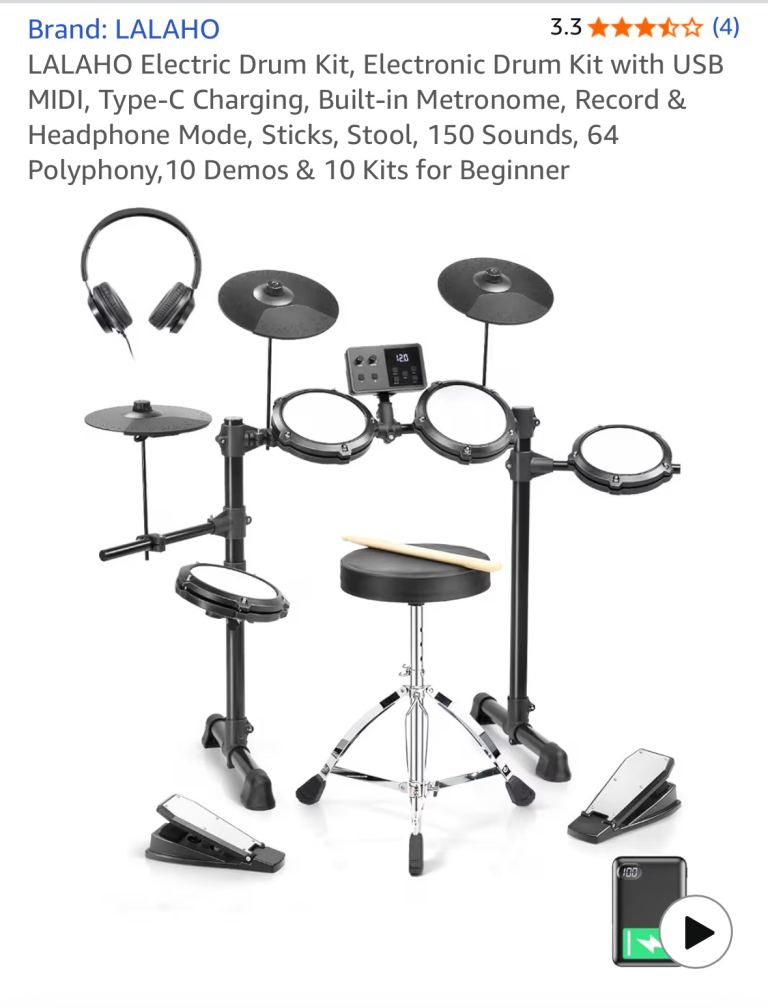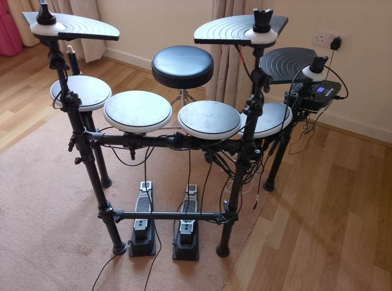 The Yamaha DD-65 is a popular, compact, tabletop electronic drum kit featuring eight touch-sensitive pads, two assignable foot pedals (kick & hi-hat), and a versatile sound module with hundreds of voices, kits, and built-in songs for practice or performance. It's designed for portability, offers headphone/speaker output, an AUX-in jack for MP3s, and MIDI/USB connectivity for recording and learning, making it great for beginners and space-constrained drummers.