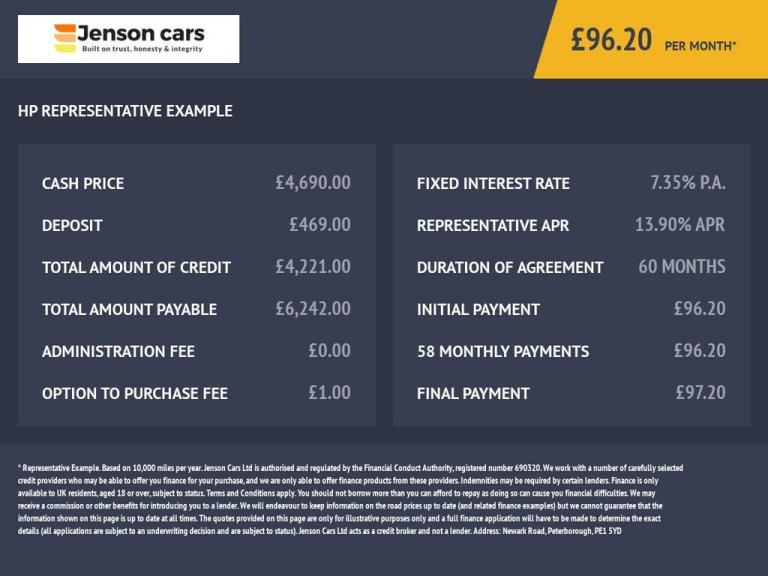 Here at Jenson Cars, we try our upmost to make sure the information contained in our adverts are accurate and complete, however please be aware that errors and omissions may occur from time to time. We use prefixed data from various search engine and dealer-edit software which may not always be accurate. If unsure please do confirm with us on any details, specification as we will NOT be held responsible for any errors.