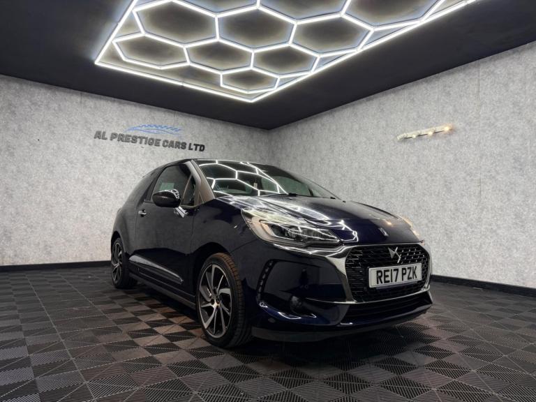 MOT 16 Aug 2026 / ROAD TAX £195 / 2 OWNERS Navigation HDDParking Sensor(s)Climate ControlTemporary Spare Wheel17'' Alloy WheelsPrivacy GlassThis vehicle comes fully prepared and ready to drive away, giving you complete peace of mind:Fresh Service CompletedMinimum 6 Months MOT3 Months Warranty Included (extendable)12 Months Nationwide Breakdown CoverComprehensive Mechanical Health CheckFinance Available at Very Competitive Rates Instant decision within 30 secondsDiscover this exceptional 2017 DS 3 PureTech Prestige, boasting incredibly low mileage of just 28,286 miles and having had only two owners. This stylish hatchback is powered by an efficient 1.2L Euro 6 petrol engine, offering a compelling blend of performance and economy. The Prestige trim level ensures a premium experience, enhanced by notable features such as front and rear parking sensors with parking assistance, and the sophisticated DS LED Vision system which combines Xenon and LED headlights for superior illumination. Inside, you'll appreciate the automatic air conditioning for a comfortable cabin environment, alongside Bluetooth handsfree and media streaming capabilities with a convenient USB socket.This DS 3 stands out with its impressive fuel economy, achieving a remarkable 61 miles per gallon, which is significantly better than many other vehicles in its class. Its low CO2 emissions also contribute to its appeal, making it a more environmentally conscious choice. For those who enjoy a responsive drive, it accelerates from 0 to 62 miles per hour in just 9.9 seconds, demonstrating a lively performance that complements its efficient nature. This combination of low running costs, excellent condition, and desirable features makes this DS 3 a truly attractive proposition.20 Chappel road