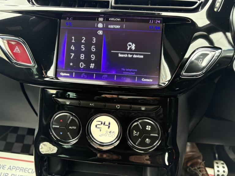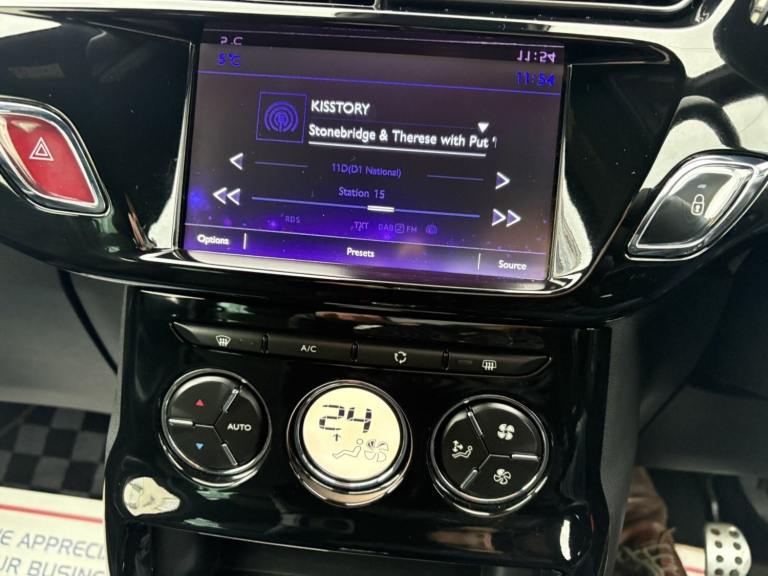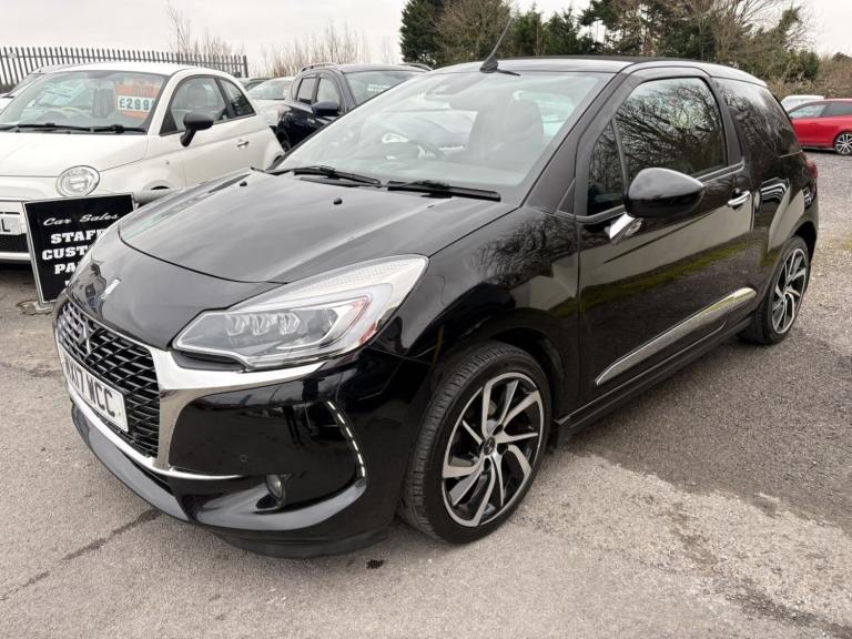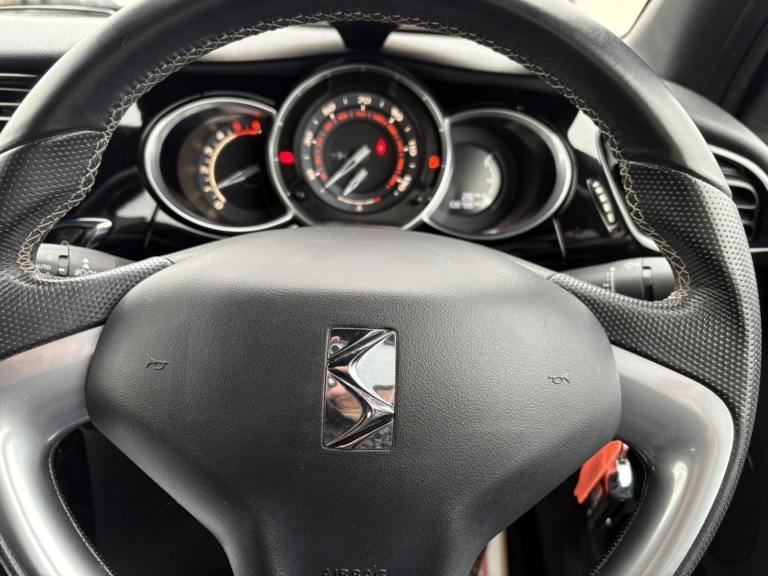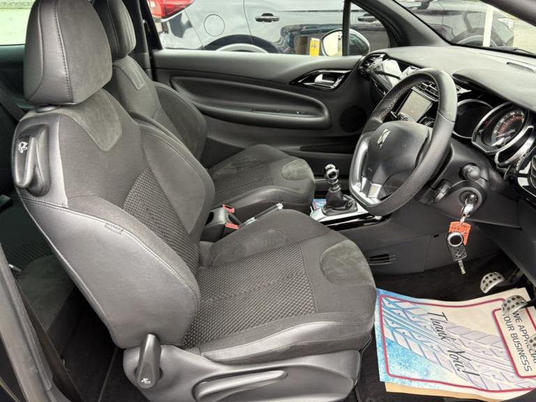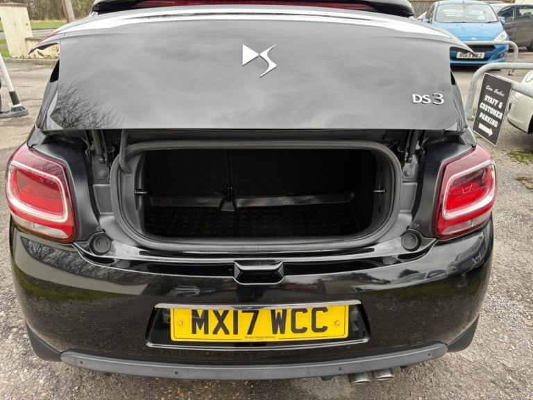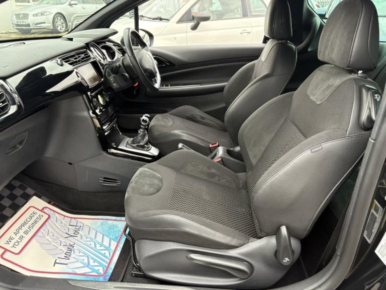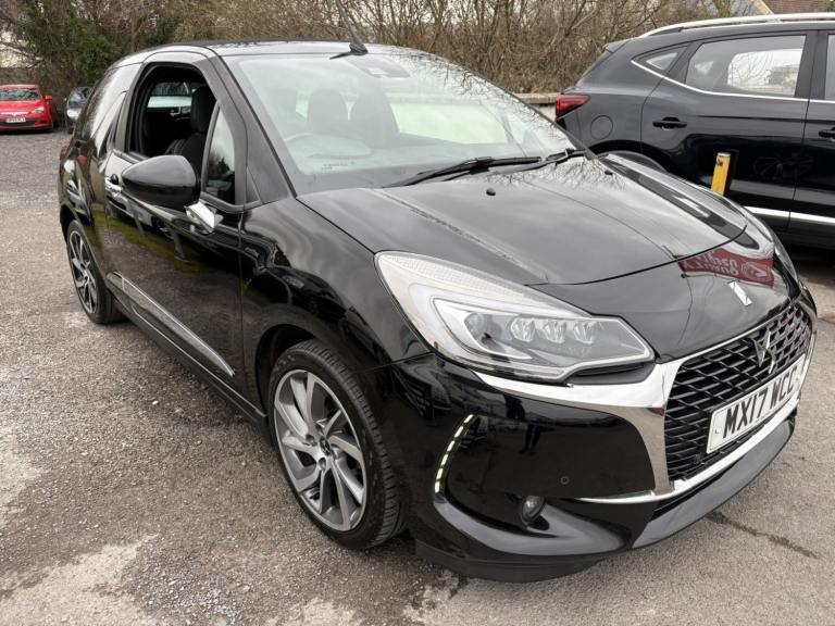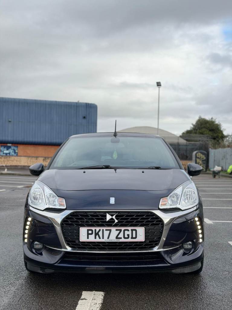 Service History, 7 Service Stamps in Service Book, Power Roof, 2017 DS DS 3 1.6 BlueHDi 120 Prestige 2dr convertible has only 109000 miles on it and is powered by a diesel engine, making it a fuel-efficient option. With 5 seats and 3 doors, this car is perfect for small families or individuals looking for a stylish ride. The MOT is valid until 17/08/2026, and it is ULEZ compliant, ensuring that it meets the necessary emissions standards for driving in London. It has had 1 previous registered keeper(s) and comes equipped with features like a 7"" touch screen, Bluetooth + USB connectivity, cruise control + speed limiter, DS connect box emergency assist system, and eMyWay Satellite Navigation, making it a comfortable and convenient choice for any driver. We try to provide as many images and as much information as possible for all our stock but please feel free to contact us if you require further information. We can also offer UK MAINLAND DELIVERY on all of our vehicles, please ask for details, 7"" touch screen Bluetooth + USB Cruise control + speed limiter DS connect box emergency assist system eMyWay Satellite Navigation Front parking sensors Mirror screen with mirror link and car play Multi function trip computer Outside temperature display Rear parking sensors Rev counter Service interval indicator Variable power steering Diesel particulate filter Sports suspension Arkamys Hi-Fi speakers with digital amplifier and subwoofer Auxiliary input socket DAB Digital radio Steering wheel mounted controls 3D effect LED rear lights Automatic lights and wipers Body coloured bumpers Chrome door handles Chrome DS Wings grille Chrome front fog light surround Chrome rear bumper inserts Chrome side rubbing strips Chrome tailgate insert Dark tinted rear windows Electric adjustable door mirrors Electric folding roof Electric Front Windows Electric heated folding door mirrors Electro-chrome auto-dimming rear view mirror LED daytime running lights LED front fog lights Rear Spoiler Twin chrome exhaust tailpipes Xenon headlamps With LED signature 12V socket Automatic air conditioning Boot light Driver's seat height adjustment Driver/pass sunvisor/covered courtesy mirrors Floor mats Front and rear headrests Front courtesy lights Front door pockets with bottle holders Front passenger seat height adjust Front reading light Front seat and rear pockets Height/reach adjust steering wheel Instrument lighting dimmer Interior mood lighting Isofix rear child seat preparation Lashing eyelets in boot Leather handbrake with chrome insert Pollen filter Satin chrome door sill protectors Satin chrome steering wheel inserts Split folding rear seat 5 three point inertia reel seatbelts ABS + EBD + EBA Active city braking Curtain Airbags Driver seatbelt warning indicator Driver/Front Passenger airbags ESP Front lateral airbags Front seatbelt pretensioners with force limiters Hill start assist Tyre pressure monitoring system Alarm Deadlocks Immobiliser Locking wheel bolts Remote control central locking Gloss black centre console and interior door handle surround Satin chrome gear surround Tyre repair kit Warranty Sat-Nav.