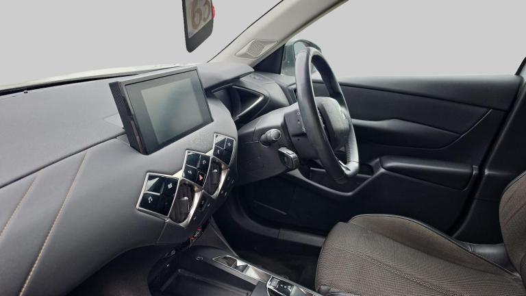 12V Socket7in Touchscreen8 SpeakersBluetooth Handsfree and Media StreamingDAB Digital RadioDS Connect Box Emergency and Assistance SystemMirror Screen with Android Auto and Apple Car PlayOne Front USB Connection PointRapid Charging Capability - 100kWCruise Control with Speed LimiterMulti-Function On-Board Trip ComputerRear Parking SensorsTyre Pressure Monitor17in Alloy Wheels - AnkaraAcoustic and Tinted Front and Rear WindscreenChrome Door HandlesDark Tinted Rear WindowsDS Monogram on the Rear TailgateE-TENSE BadgingElectrically Adjustable - Heated - Folding Door Mirrors with LED SpotlightFlush Fitting Door HandlesFront and Rear Electric WindowsGloss Black Door MirrorsHeated Rear WindscreenLocking Wheel BoltsSatin Chromed DS WingsTyre Repair KitWhite Centre Caps with DS LogoHeadlights - AutomaticHeadlights - HalogenLED Daytime Running Lights40-60 Split Rear Seats Backrest7in Digital Instrument ClusterAutomatic Air ConditioningAutomatic Front Windscreen WipersBag Support Hooks in the BootBlack Leather Steering WheelBoot LightingDS Inspiration - BastilleFrameless Electrochromic Interior Rear View MirrorFront and Rear Carpet MatsFront and Rear Courtesy Reading Lights - LEDFront and Rear Grab HandlesFront Double Cup HolderHeight Adjustable Front and Rear HeadrestsHeight Adjustable Front SeatsKeyless StartLight Grey Interior RoofOdour FilterPremium Seat with Comfort Foam and Pads and Map PocketProgrammable Heater with Temperature RegulatorSunvisors with LED Courtesy MirrorTinted Exterior Door Mirrors11kW On-Board ChargerAccelerated Charging CableVariable Power Assisted SteeringABS - Anti-lock Braking SystemAirbags - Front - Rear Lateral and CurtainAlarm - Perimetric and Volumetric with Anti-Lift DetectionAutomatic Rear Wiper when Reverse Gear is SelectedElectric Parking BrakeESP - Electronic Stability ProgrammeFront Seatbelts with Pretensioners and Front-Rear Load LimiterHill Start AssistRemote Central Control Locking with DeadlocksSafety PackSeat Belt Unfastened WarningTwo Rear ISOFIX Mounting PointsWarning Triangle Fasteners in the Boot