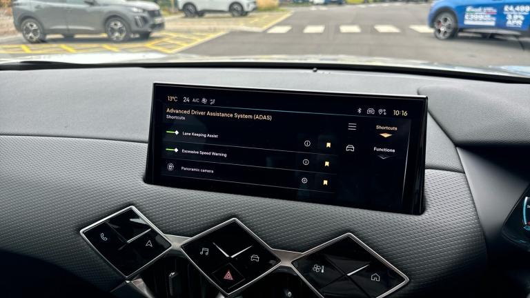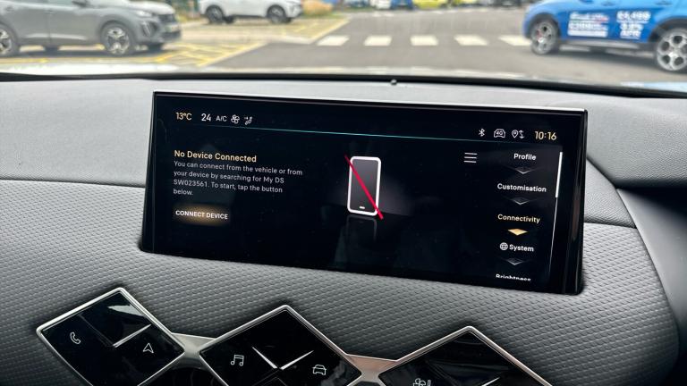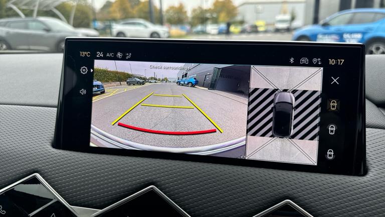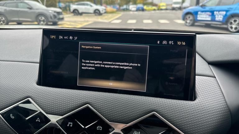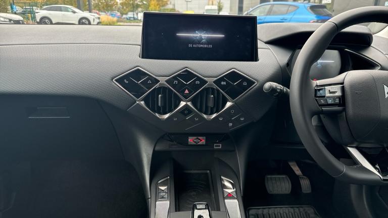 10.3in HD Touchscreen12V SocketDAB Digital RadioDS Connect Box Emergency and Assistance SystemDS Iris System - 3D Connected Navigation - Natural Voice Recognition - Bluetooth Connectivity - Over-the-air UpdatesFront USB-C PortMirror Screen with Apple CarPlay and Android Auto with Wireless ConnectionRapid Charging Capability - 100kWRear USB-A PortStereo System - Includes Eight LoudspeakersTomTom Speedcam - Danger Zones (3 Year Subscription From New)Wireless Charging for SmartphoneBlind Spot Monitoring SystemCruise Control with Speed LimiterDrive Mode Selector - Eco-Normal and SportFront and Rear Parking SensorsLane Departure WarningMulti-Function On-Board Trip ComputerReversing Camera - 360 Degree VisionTyre Pressure Monitoring Sensors - Indirect17in Alloy Wheels - Dublin - Diamond CutAcoustic and Tinted WindscreenBrilliant Black Front Grille with Chrome Accents - Black DS Wings and Chrome DS EmblemBrilliant Black Rear Tailgate Trim and Rear Light SurroundDark Tinted Acoustic Rear Windows with Heated Rear WindscreenDark Tinted Rear WindowsDoor Mirrors - Electrically Adjustable - Tinted - Power Folding and HeatedDS 3 Inscription - Chrome Finish - Located on TailgateDS Emblem - Chrome Finish - Located on TailgateE-TENSE Inscription - Chrome Finish - Located on TailgateFlush Fitting Door Handles in ChromeFront and Rear Side Windows - Electric- One-Touch -Pinch ProtectionFront Ventilated Disc Brakes - Rear Disc BrakesGloss Black Door MirrorsLocking Wheel NutsTyre Repair KitAutomatic LightsLED Daytime Running LightsLED Headlights7in Digital Instrument ClusterAutomatic Air ConditioningAutomatic Windscreen WipersBlack Perforated Leather Steering Wheel with Contrast StitchingBoot LightingCloth Sunvisors with LED Courtesy Mirror and Ticket HolderDashboard Facia Decor - Basalt Black Decor with Scale EffectDoor Panel Decor - Basalt Black Decor with Scale EffectDoor Pockets - Front - Includes Bottle Storage up to 1.5 LitresDoor Pockets - Rear - Includes Bottle Storage up to 0.5 LitresEngine Start Button - Gloss Black and Chrome with Clous De Paris EmbossingFront and Rear LED Interior Reading LightsFront Central Armrest - Includes StorageFront Central Armrest - Isabella Mistral Black Leather EffectFront Cup Holder x2Front Footwell with LED LightingFront Seats - Headrest x2 Mechanical Height AdjustmentFront Seats - Manual Longitudinal-Height and Backrest Angle AdjustmentFront Seats - Premium Design with Comfort
