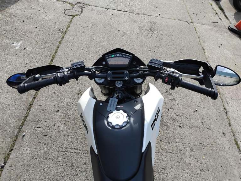 White Ducati Hypermotard 796, year 2011 (11 reg.), 15,365 miles. MOT included in the price. PLEASE VISIT OUR WEBSITE DIRECTLY FOR THE FULL RANGE OF UP-TO-DATE STOCK WHICH MAY NOT BE ON OTHER PLATFORMS. VIEWING STRICTLY BY APPOINTMENT ONLY. Visit [Website URL removed] call 01759 591666 or email [Email address removed. Click Email button to contact us.] for more details.