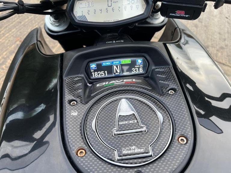Black Ducati Diavel, year 2012 (12 reg.), 18,282 miles. PLEASE VISIT OUR WEBSITE DIRECTLY FOR THE FULL RANGE OF UP-TO-DATE STOCK WHICH MAY NOT BE ON OTHER PLATFORMS. VIEWING STRICTLY BY APPOINTMENT ONLY. Visit [Website URL removed] call 01759 591666 or email [Email address removed. Click Email button to contact us.] for more details.