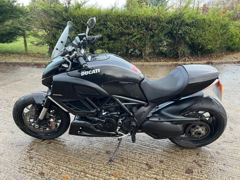 2012 12 Ducati Diavel, 18k miles only, Beast of a bike -Ducati's take on a performance cruiser with monster acceleration and bags of torque. A comfortable riding position with aggressive sound and styling in the desirable Black with Termignoni exhaust, MOT valid to August and is all HPI clear. Service history with 5 service stamps.