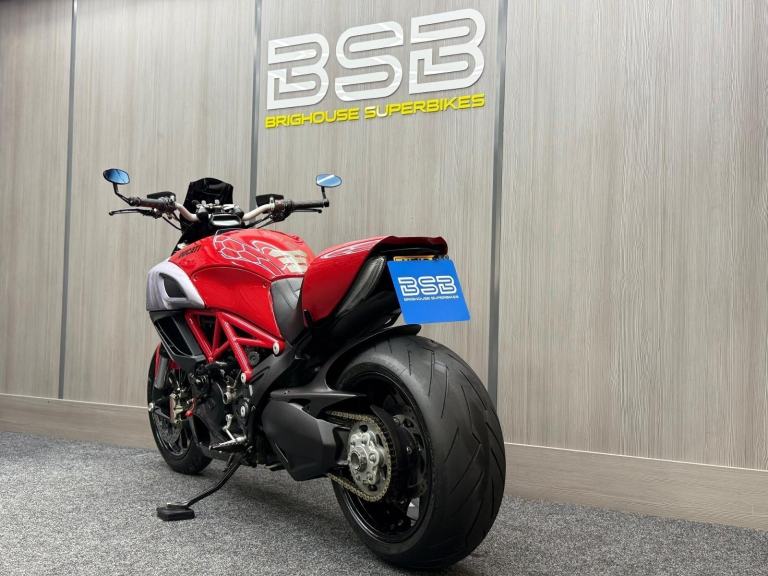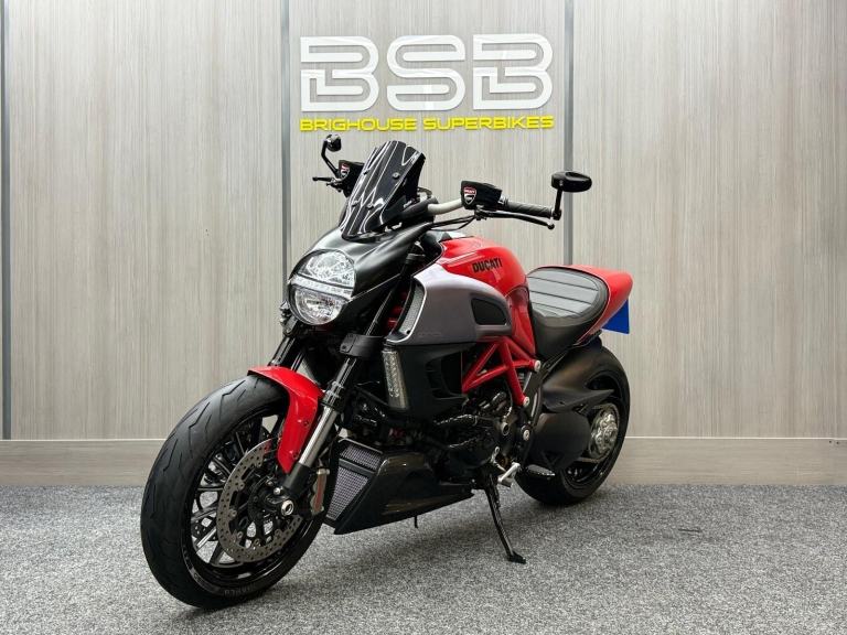 2012 12 Ducati Diavel 1198 Euro 3 finished in Rosso Red with Gloss Black & Polished wheels, ABS, DTC, DWC, Remus exhaust, Tail tidy, Rear seat pod, Bar end mirrors, Fly screen, Comfort seat + standard included in sale, Recently serviced including Pirelli Diablo Rosso 3 tyres, Comes complete with Ducati book pack including service history & Owners manuals, FOR FURTHER DETAILS PLEASE CALL BRIGHOUSE SUPERBIKES ON 01484 973625 or [Phone number removed]- ALL OF OUR VEHICLES ARE HPI & MILEAGE CHECKED - FULL WALK AROUND VIDEOS AVAILABLE ON REQUEST - LOW RATE FINANCE ARRANGED - PX WELCOME - NATIONWIDE DELIVERY, 2 seats, Red, 5+ owners, £6,590