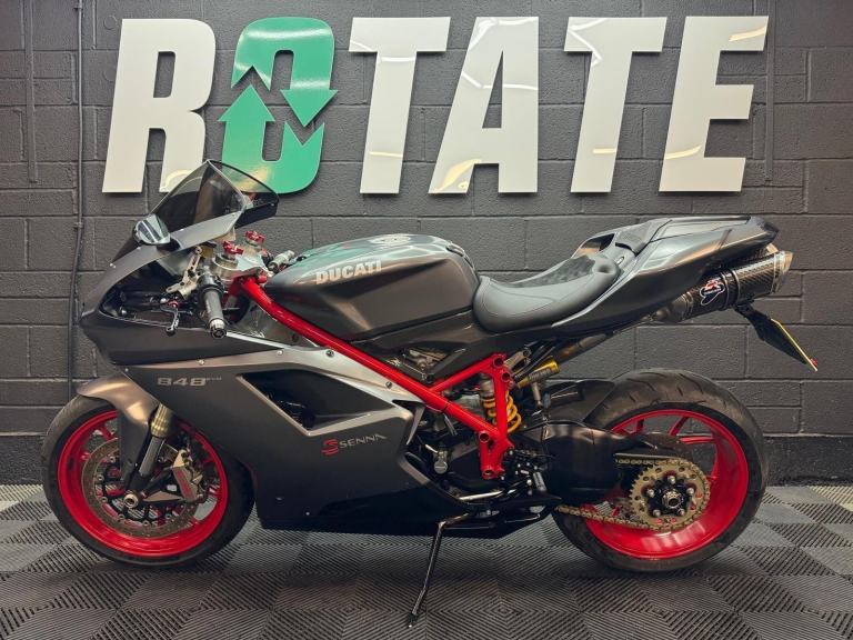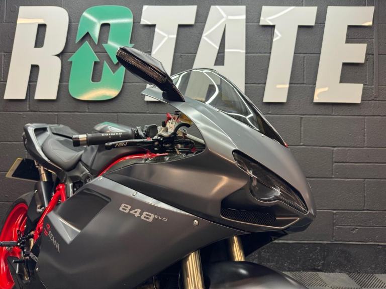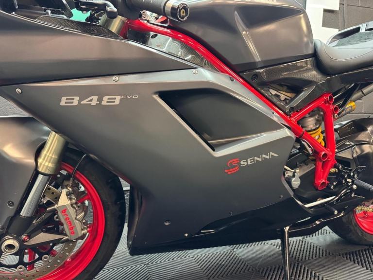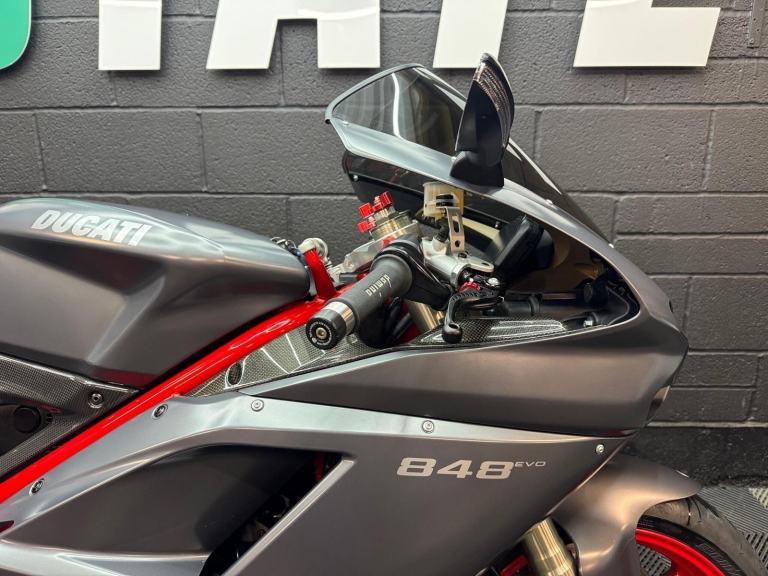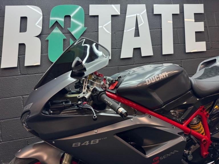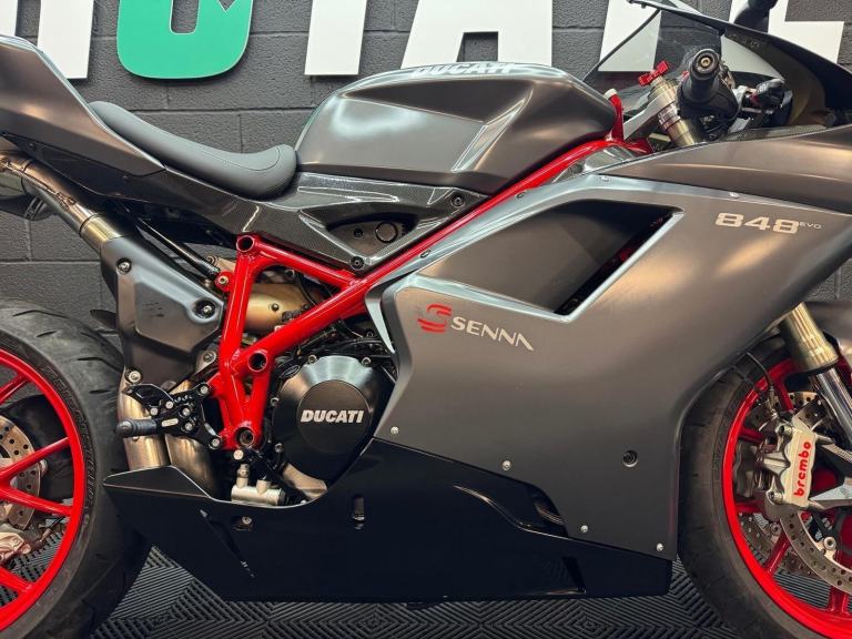Grey, 2012 Ducati 848 Evo, Registered March 2012 (12 Plate), 6 Owners from new, 8749 Miles only, Full service history, Immaculate condition, HPI Clear, 3 Months warranty included, All keys & manuals included, V5 present, Stunning metallic colour scheme, *All used vehicles pass a full 60 point health check*, Brand new 12 months MOT & Belt Service included, Great accessories fitted including: Termignoni Carbon Exhausts / Gilles Clip On Handle Bars / Titanium Axle Nuts / Titanium Sprocket Carrier Nuts / AEM Factory Sprocket Carrier / R&G Bar Ends / Domino Grips / Renthal Sprockets / Oberon Slave Cylinder / ASV Adjustable Levers / Ducati Performance Rear Ride Height Adjuster / Sigma Performance Slipper Clutch / Bonamici Adjustable Rear Sets / MWR Air Filter / Custom Senna Colour Scheme / Ducati Performance Mirrors / Custom Seat / Ducati Seat Cowl / TST Industries LED Rear Light / Ducati Performance Carbon Fibre Tail Tidy / Tinted Screen ........ Part exchange welcome.......Finance [Website URL removed] delivery available...... Please don't hesitate to call Ross for more information........ Viewing by appointment only ? 7 Days a week, Secure now with a £100.00 fully refundable deposit!!!! Please follow us on Instagram or Facebook and stay up to date with Rotate Motorsport?.***Apply For Finance Now Through My Website*** All major credit and debit cards accepted. Please visit my website for more information & to view current full stock list, [Website URL removed] Buy with confidence, I?m a 5 star reviewed dealer as I am a small family run business with over 15 years main dealer experience, Please see Autotrader customer reviews for peace of mind., 5 owners, 2 keys, Electric start, LED Indicators, Rear Hugger, Screen, Seat Cowl, Stainless Exhaust