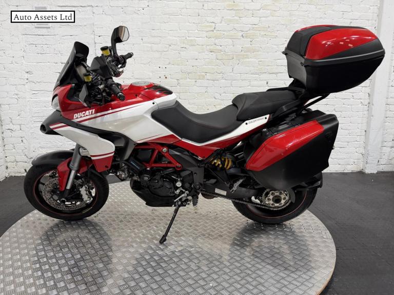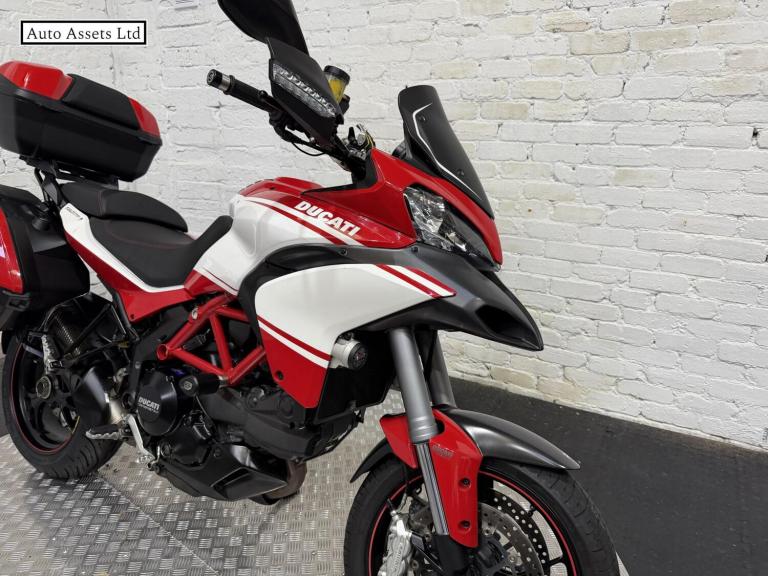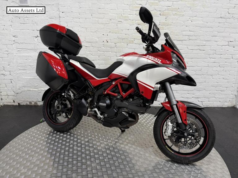Make: Ducati Model: Multistrada 1200 Pikes Peek S Millage: 7,495 Miles Year: 2014 MOT Expiry: 08/08/2026 Service History: Part Last Service Date: 06/01/2026 (This service included the Desmo & x2 brand new tyres) Last Service Millage: 7,495 Miles Number of Keys: 2 V5 present: Yes Extras: Full Luggage, Upgraded Exhaust, Quick Shifter, Cruise Control, Heated Grips. Reserve the vehicle today for £100 via our website [Website URL removed] (or just search for Auto Assets Ltd). Warranty & breakdown packages available on vehicles of all ages. All vehicles HPI Checked. Part Exchanges welcome. Low rate finance available. Credit cards payments accepted. Full Walk round video available. UK Delivery from £49. Viewing available by appointment 7 days a week between 8am and 10pm. FCA Approved. Vat Registered.