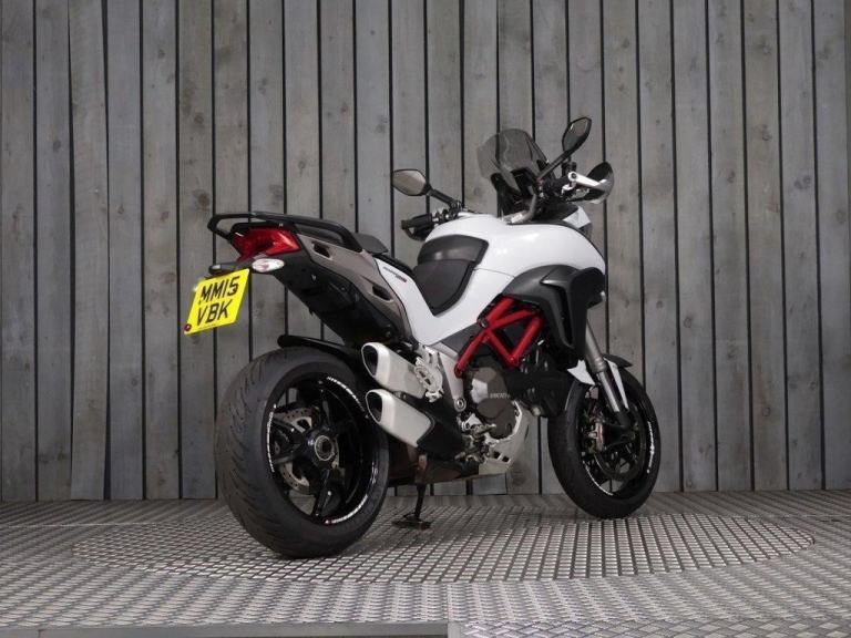 This 2015 WHITE DUCATI MULTISTRADA 1200 motorbike has done 25765 miles and is in great condition. It's available for collection from our CRAWLEY showroom or can be delivered anywhere on the UK Mainland. This bike has 6 previous owners, comes with 2 Keys, and a PART SERVICE HISTORY.
