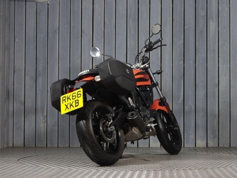 This 2016 ORANGE DUCATI SCRAMBLER 400 motorbike has done 5066 miles and is in excellent condition. It's available for collection from our DONINGTON showroom or can be delivered anywhere on the UK Mainland. This bike has 5 previous owners, comes with 3 Keys, and a PART SERVICE HISTORY.