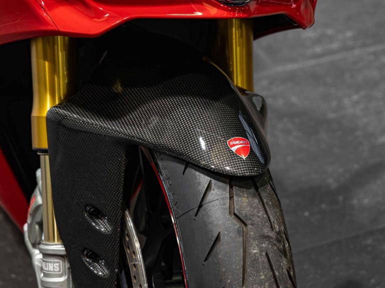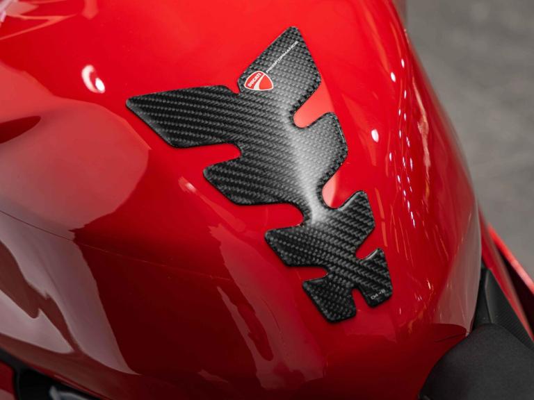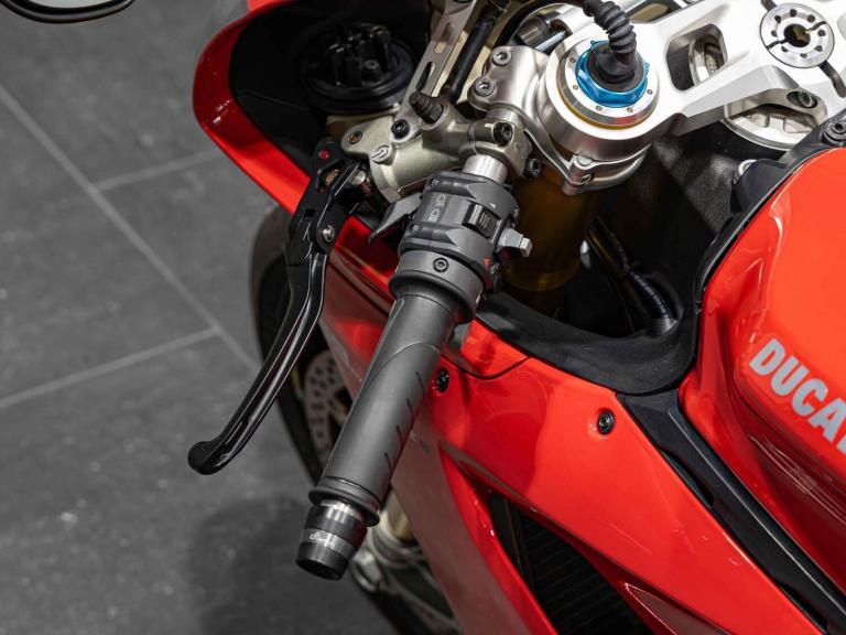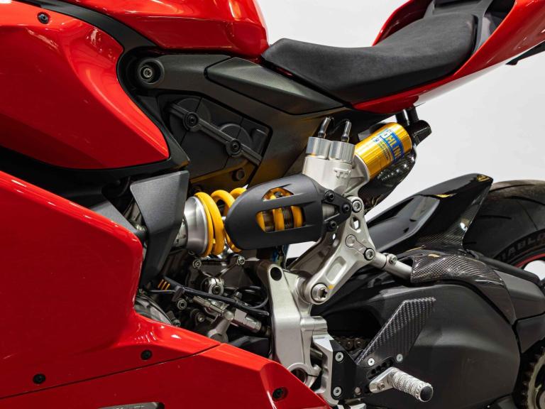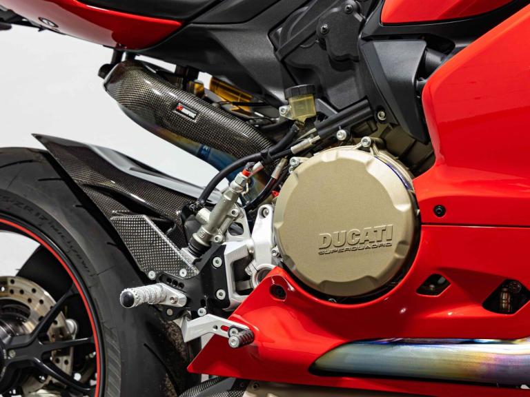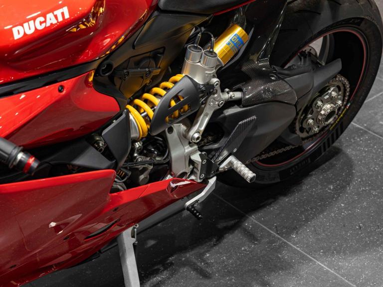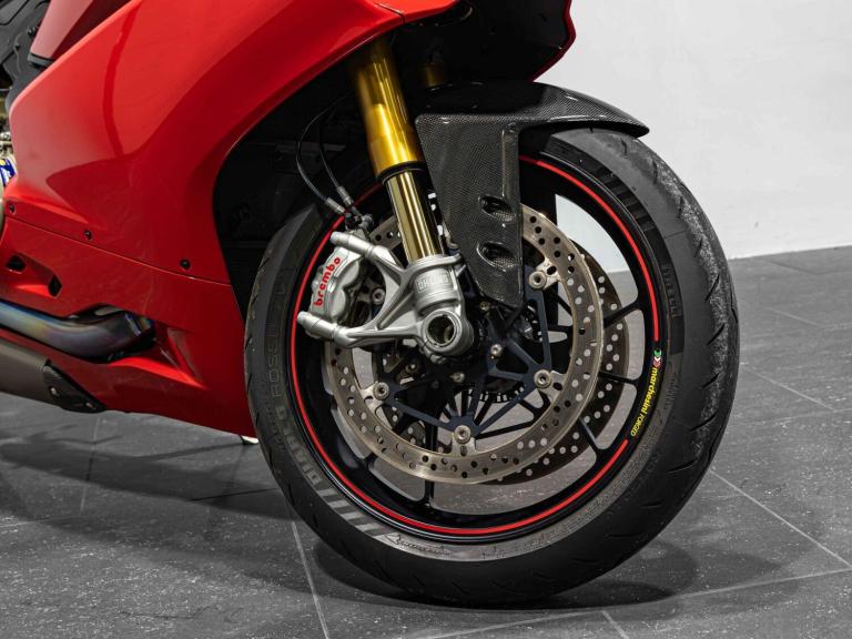 Complete Racing Akrapovic carbon exhaust (original also supplied)Marchesini forged Matte Black alloy wheelsCarbon front and rear mudguardCarbon exhaust shroudCarbon heel guardsCarbon tank protectorLighTech bar endsPillion seat suppliedPanigale-related number plate included with sale STANDARD FEATURESFully adjustable inverted Electric Ohlins suspensionFully adjustable Ohlins TTX rear shockEngine Brake ControlDucati quick ShiftDucati Wheelie ControlDucati Traction Control