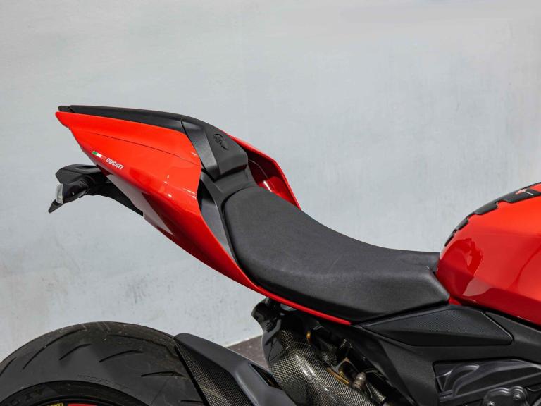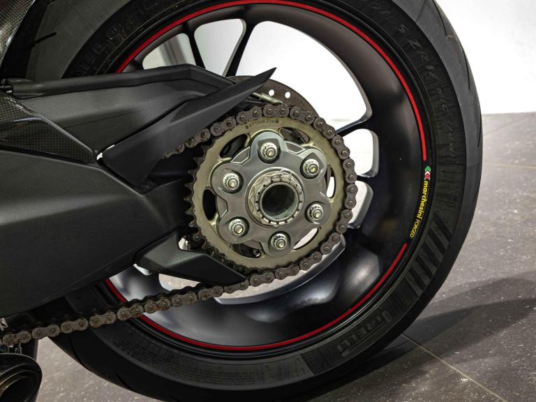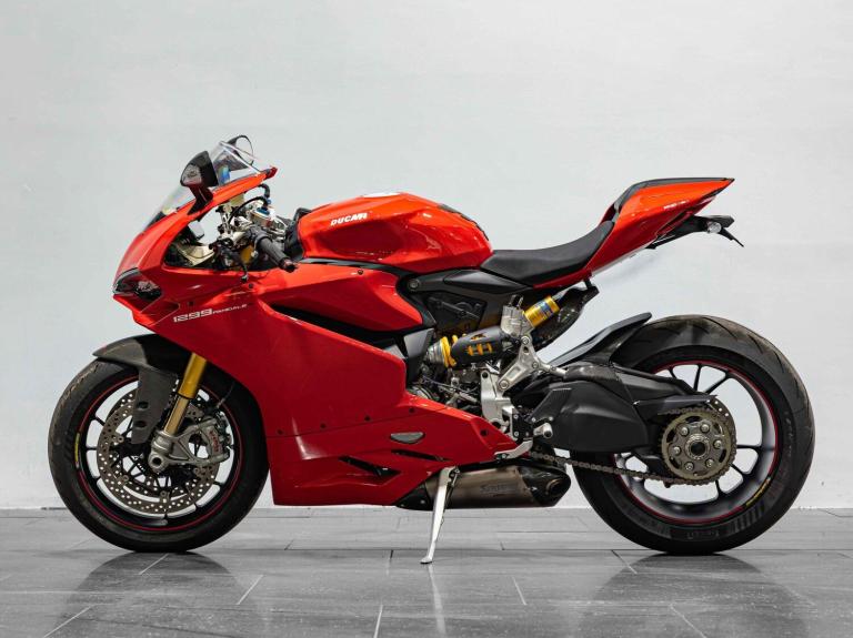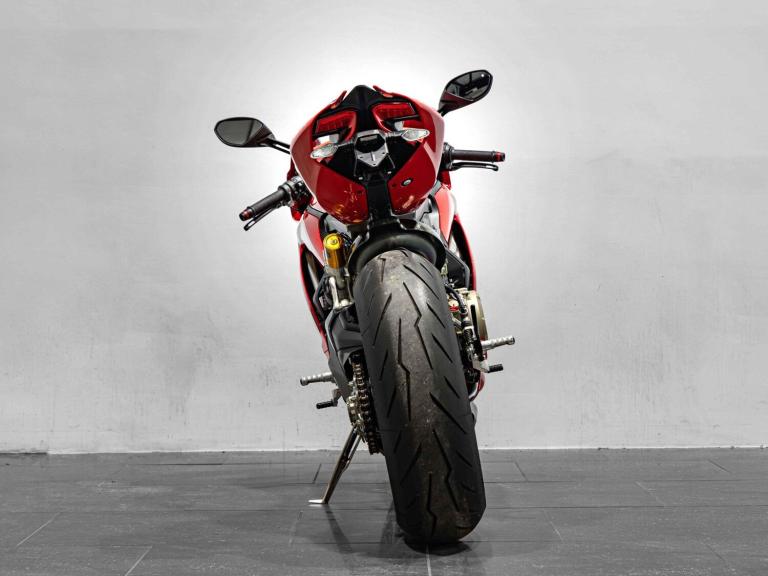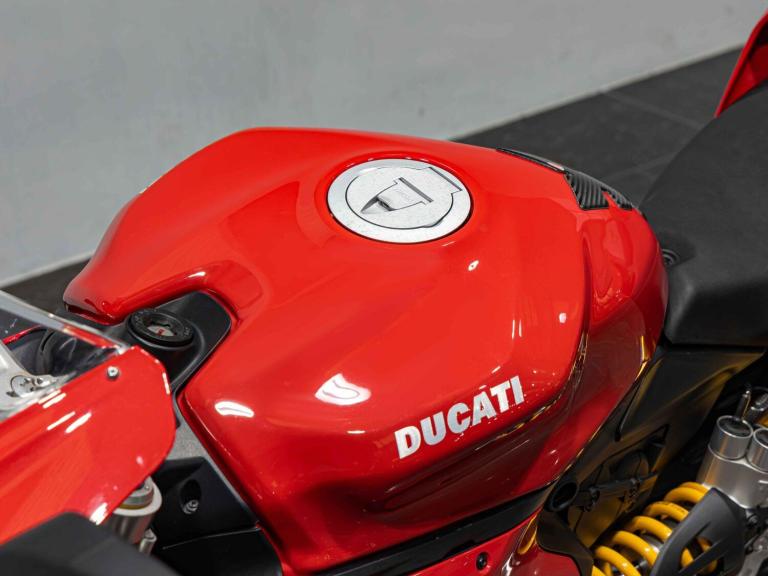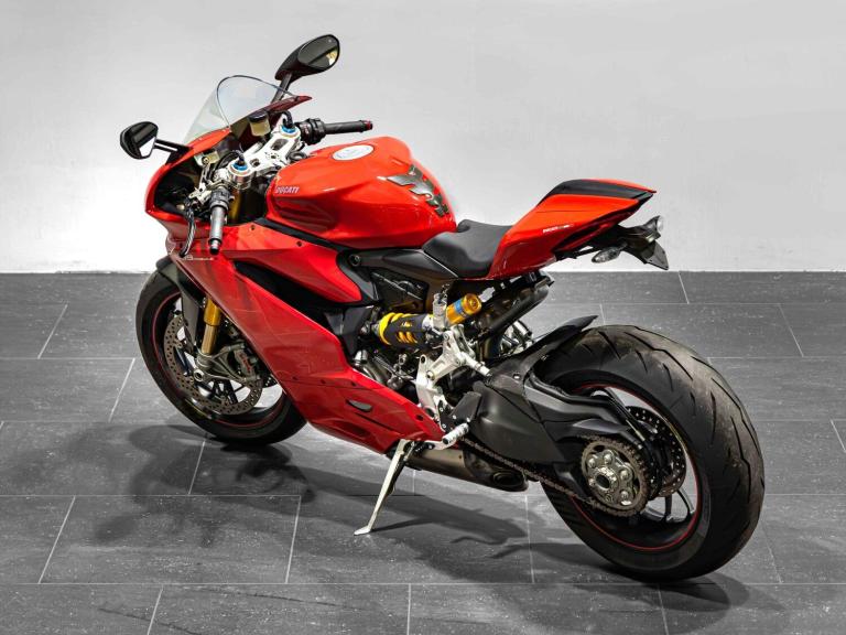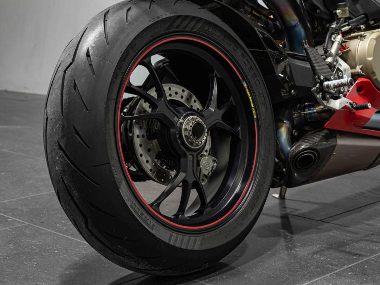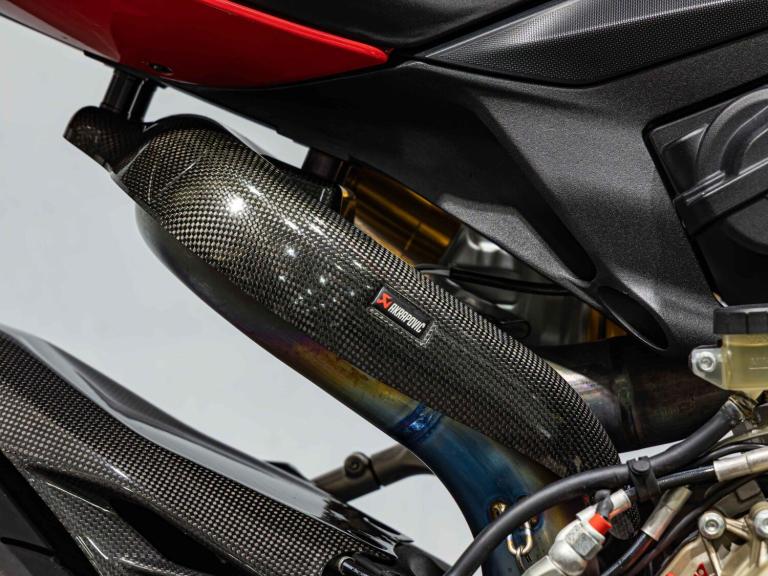 Complete Racing Akrapovic carbon exhaust (original also supplied)Marchesini forged Matte Black alloy wheelsCarbon front and rear mudguardCarbon exhaust shroudCarbon heel guardsCarbon tank protectorLighTech bar endsPillion seat suppliedPanigale-related number plate included with sale STANDARD FEATURESFully adjustable inverted Electric Ohlins suspensionFully adjustable Ohlins TTX rear shockEngine Brake ControlDucati quick ShiftDucati Wheelie ControlDucati Traction Control