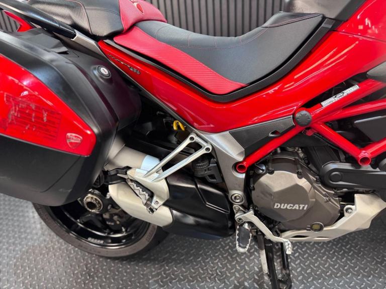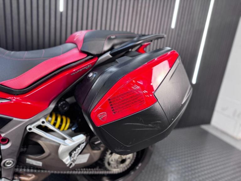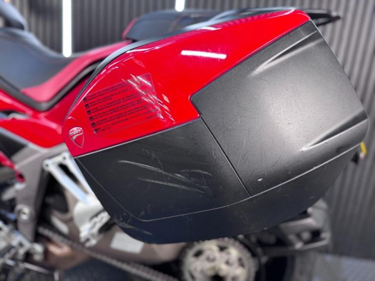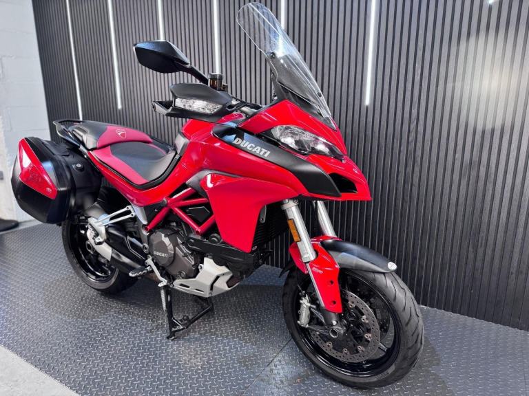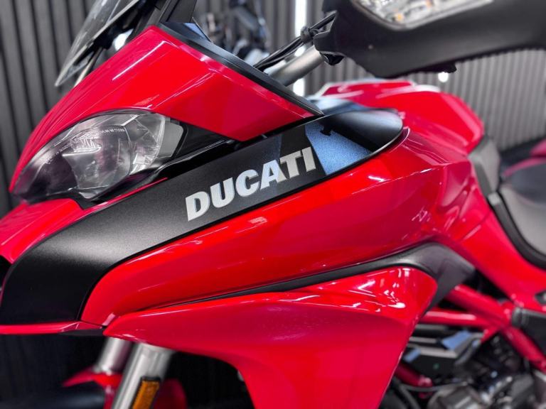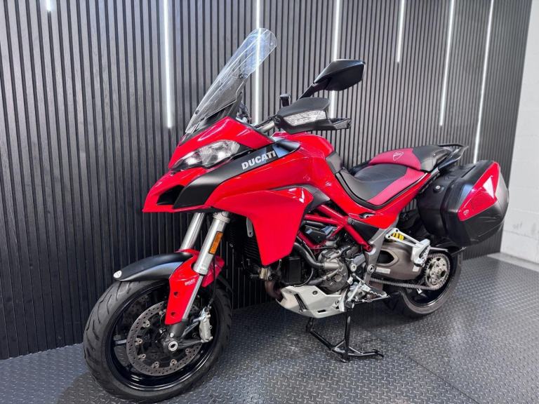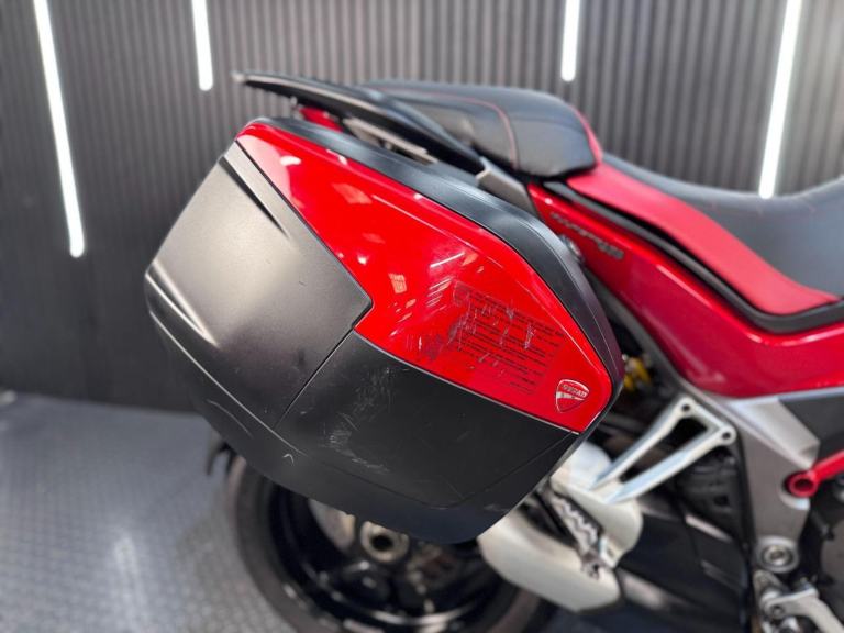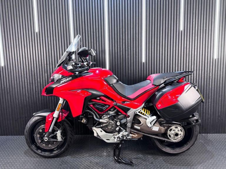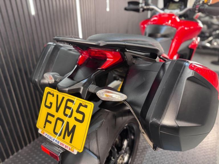 Red, 24/7 ONLINE PURCHASE AVAILABLE - This 2015 Ducati Multistrada 1200 is the ultimate ''four-bikes-in-one'' Italian adventurer, finished in iconic Ducati Red. With a low 9,616 miles on the clock, this high-performance tourer is in good condition and has been professionally prepared for its next adventure with a comprehensive general inspection, a fresh oil filter, and a new oil change. While there are a few minor marks on the panniers from genuine touring use, they do not detract from the bike's stunning profile or its capability as a world-class mile-muncher. The Multistrada 1200 redefined the adventure category by being the first to truly master the crossover between a sportbike and a tourer. It is powered by the incredible 1198cc Testastretta DVT (Desmodromic Variable Timing) engine, which produces a massive 160hp. The DVT system was a revolutionary upgrade for this 2015 model year, allowing the engine to be exceptionally smooth and tractable at low speeds while still providing that ferocious Ducati top-end rush. Whether you are navigating tight city hairpins or blasting down the Autobahn, the engine adapts its character to suit the moment perfectly. Technologically, this bike is a tour de force. It features Ducati Riding Modes (Sport, Touring, Urban, and Enduro), which instantly adjust the power delivery, Traction Control (DTC), and Wheelie Control (DWC) to match your environment. This generation also introduced Cornering ABS, which uses an Inertial Measurement Unit (IMU) to calculate lean angles and provide maximum braking safety even while tilted in a corner.***Rest assured, your new bike includes a 3-month warranty (extension options available) and is guaranteed to have at least 6 months remaining on the MOT. Making your purchase simple: Explore our flexible finance plans and benefit from our affordable nationwide delivery service. Important Note on Viewing: Stock moves quickly! If you are planning to view a particular model, we kindly ask that you call us first to confirm its availability and avoid any disappointment***, 3 owners, ABS, Centre Stand, Electric start, Hand Guards, Panniers, Rear Hugger, Screen, Stainless Exhaust, Please visit our website to buy online, apply for finance or find out about our delivery prices.