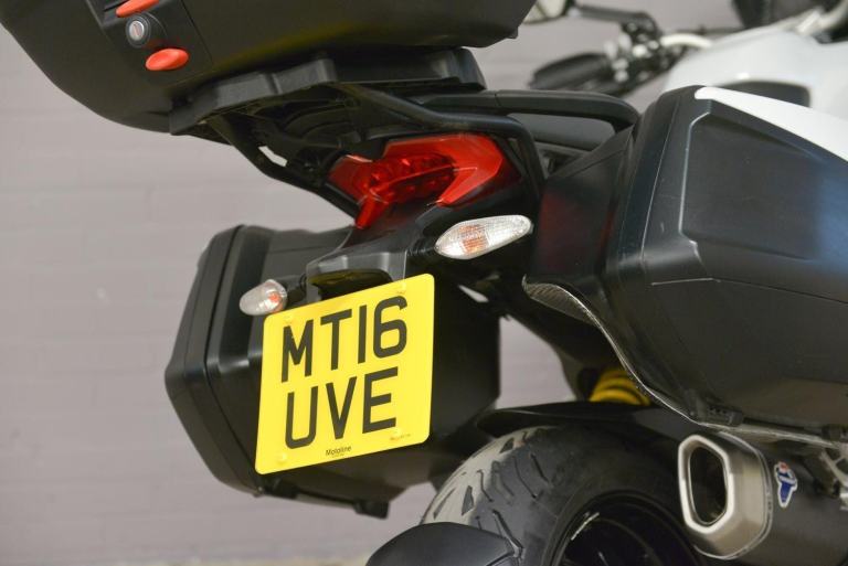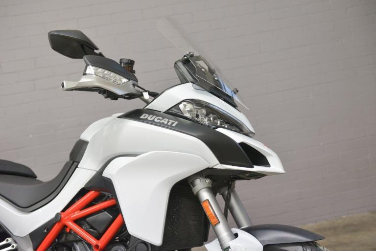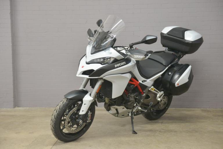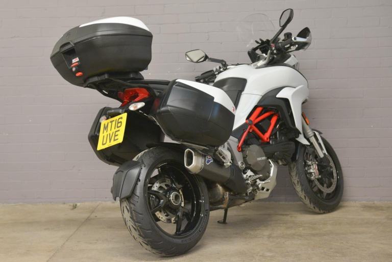 White, 2016 Ducati Multistrada S, 19323 Miles, Excellent Condition, Full Service History, Carbon Termignoni Exhaust, Full 3 Piece Colour Matched Luggage, Heated Grips, Centre Stand, Hand Guards, Adjustable Touring Screen, Riding Modes, Brembo Brakes, Cruise Control, Traction Control, ABS. Fantastic opportunity to own one of Ducati's all conquering Multistrada 1200 S's. These bike are the ultimate in passion filled touring adventure bikes. The wonderful and characterful 1200cc V-Twin engine delivers more power than you'll ever need but delivers it in such a way that will keep you grinning on every ride.This bike is in excellent condition with full service history with recent full Desmo service really does make it a fantastic bike at a fantastic price. This bike will be supplied with 12 months warranty along with 12 months MOT and even a full tank of fuel.Finance is available subject to status. Part exchanges welcome. Nationwide delivery available. Any questions please do not hesitate to get in touch., 2 owners, 2 keys, ABS, Belly Pan, Carbon Exhaust, Centre Stand, Cruise Control, Electric start, Hand Guards, Heated Grips, Panniers, Rear Hugger, Top Box, Touring screen, Traction Control
