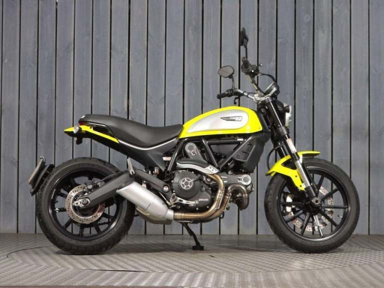 This 2017 YELLOW DUCATI SCRAMBLER 800 motorbike has done 2027 miles and is in great condition. It's available for collection from our DONINGTON showroom or can be delivered anywhere on the UK Mainland. This bike has 2 previous owners, comes with 2 Keys, and a PART SERVICE HISTORY.