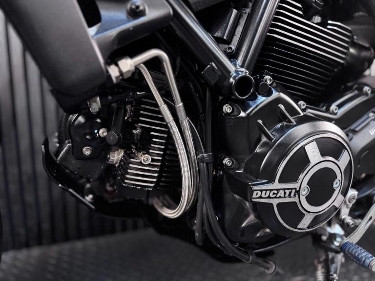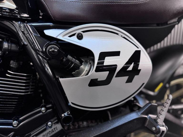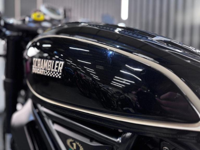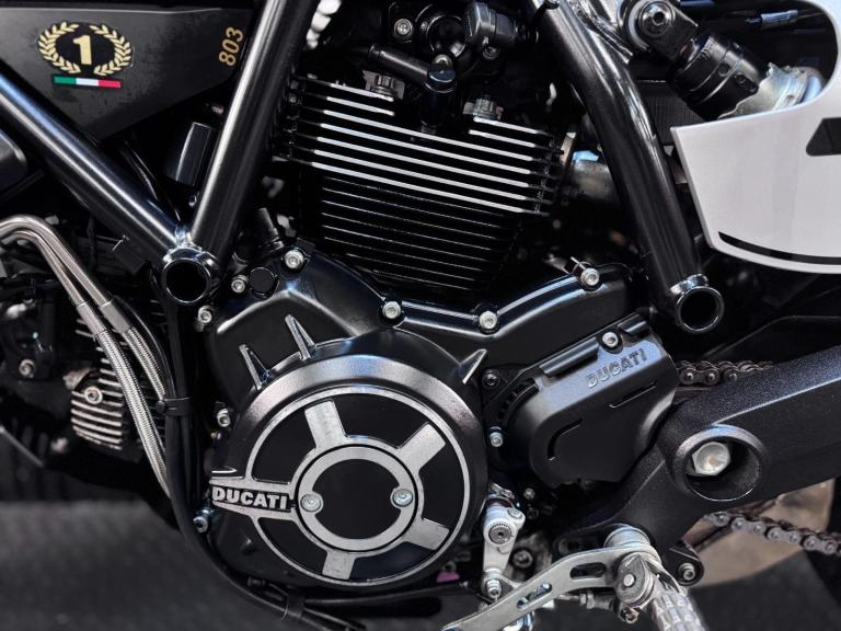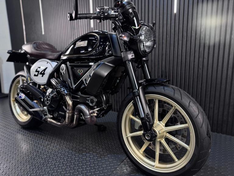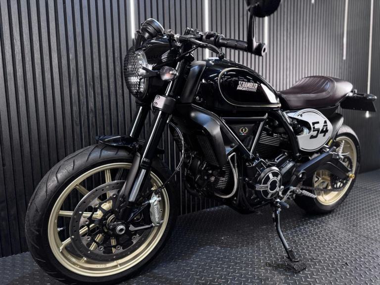 Black, 24/7 ONLINE PURCHASE AVAILABLE - For sale is this stunning 2018 Ducati Scrambler Cafe Racer, finished in the sophisticated ''Black Coffee'' paintwork with a beautiful gold frame and matching wheels. This machine has covered 9,699 miles and is in excellent condition, perfectly blending 1960s cafe culture with modern Italian performance. As a 2018 model, it carries the heritage-inspired ''54'' race plate, honoring Ducati racer Bruno Spaggiari. For your complete peace of mind, it has just received a fresh oil and filter change along with a full general inspection, ensuring its characterful V-twin is in peak condition. It comes complete with two keys and all relevant documentation. The Ducati Scrambler Cafe Racer is the definitive choice for the rider who wants a bike that looks like a custom build but handles like a precision-engineered sportbike. It is powered by the legendary 803cc air-cooled Desmodromic L-twin engine, delivering a punchy 73hp and a mechanical, raw exhaust note that is pure Ducati. What sets the Cafe Racer apart from other Scramblers is its sport-focused geometry; it features clip-on handlebars, bar-end mirrors, and a dedicated seat cowl that creates a classic ''tucked-in'' riding position. It also benefits from upgraded hardware, including a radial-mount Brembo front brake and 17-inch wheels shod with sticky Pirelli Diablo Rosso II tyres for superior cornering grip. With its shortened mudguards and Termignoni-style dual exhaust exits, the Cafe Racer remains the definitive choice for the rider seeking a sophisticated, lightweight, and evocative motorcycle that captures the ''Cool'' of the 1960s with 21st-century reliability.***Rest assured, your new bike includes a 3-month warranty (extension options available) and is guaranteed to have at least 6 months remaining on the MOT. Making your purchase simple: Explore our flexible finance plans and benefit from our affordable nationwide delivery service.***, 1 owners, 2 keys, ABS, Electric start, Stainless Exhaust, Tank Pad, Please visit our website to buy online, apply for finance or find out about our delivery prices.